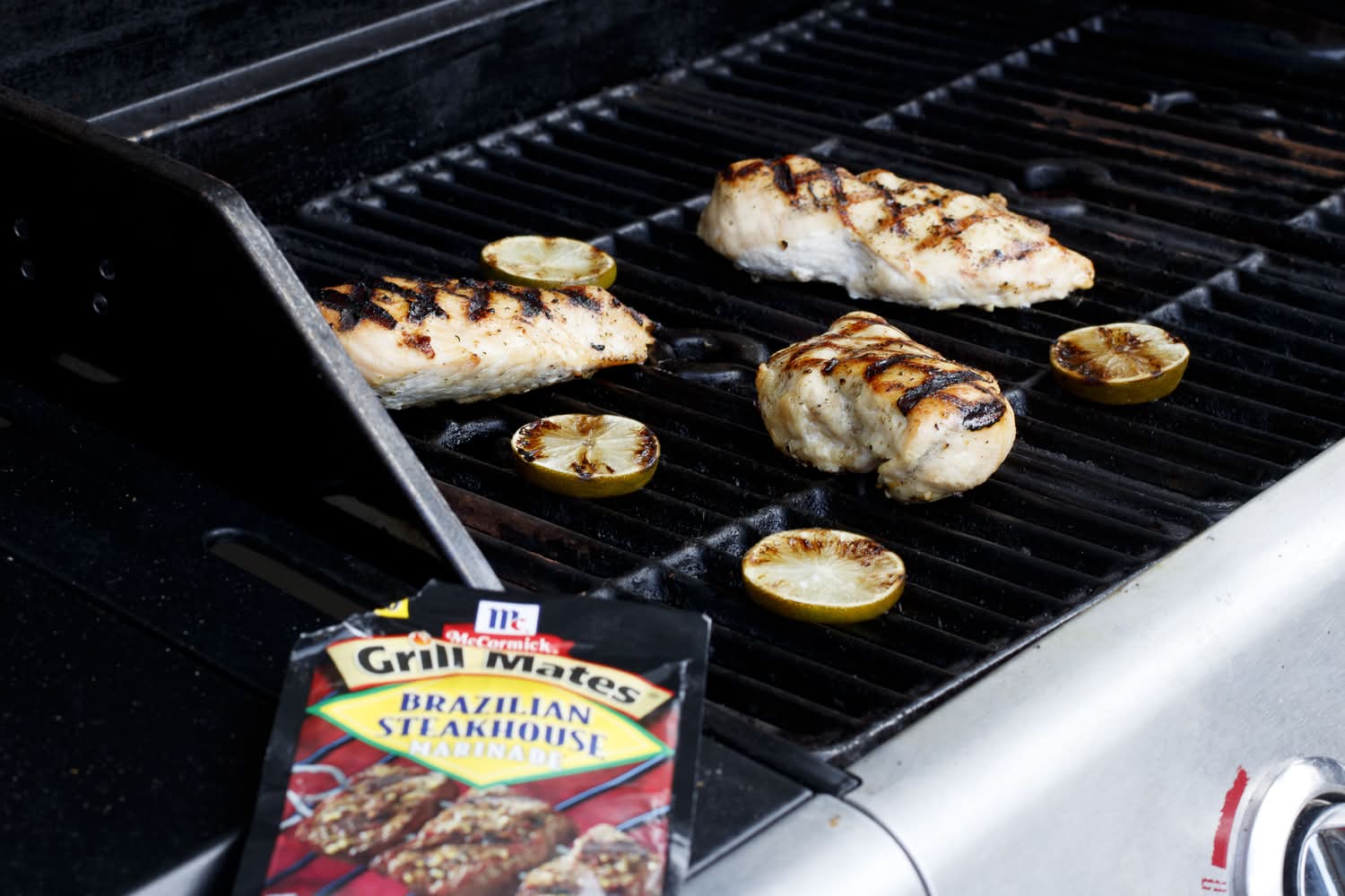 Grill: all it takes is flame & flavor 1/4 cup oil; 1/4 cup water; 1 tbsp. red wine vinegar; 2 lbs. beef, pork, chicken or shrimp* 1. whisk together marinade mix, oil, water and vinegar in bowl. reserve 2 tbsp. marinade for basting. place meat and remaining marinade in resealable plastic bag. 2. refrigerate 15 minutes or longer. remove meat from marinade. discard any remaining marinade. 3. grill until cooked through, basting with reserved marinade during last few minutes of cooking. *do not marinade seafood longer than 30 minutes. grilling tip: brazilian lime marinade substitute: 2 tbsp. lime juice for the vinegar in step 1. continue as directed.
