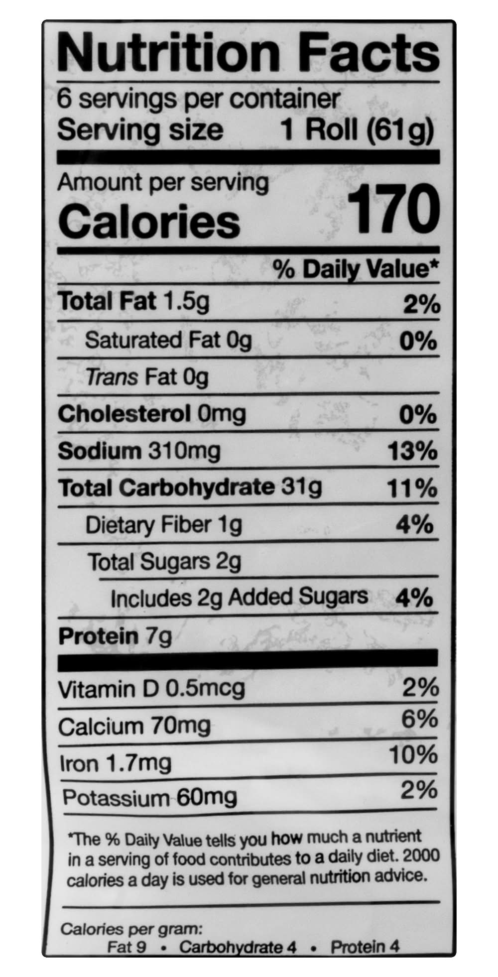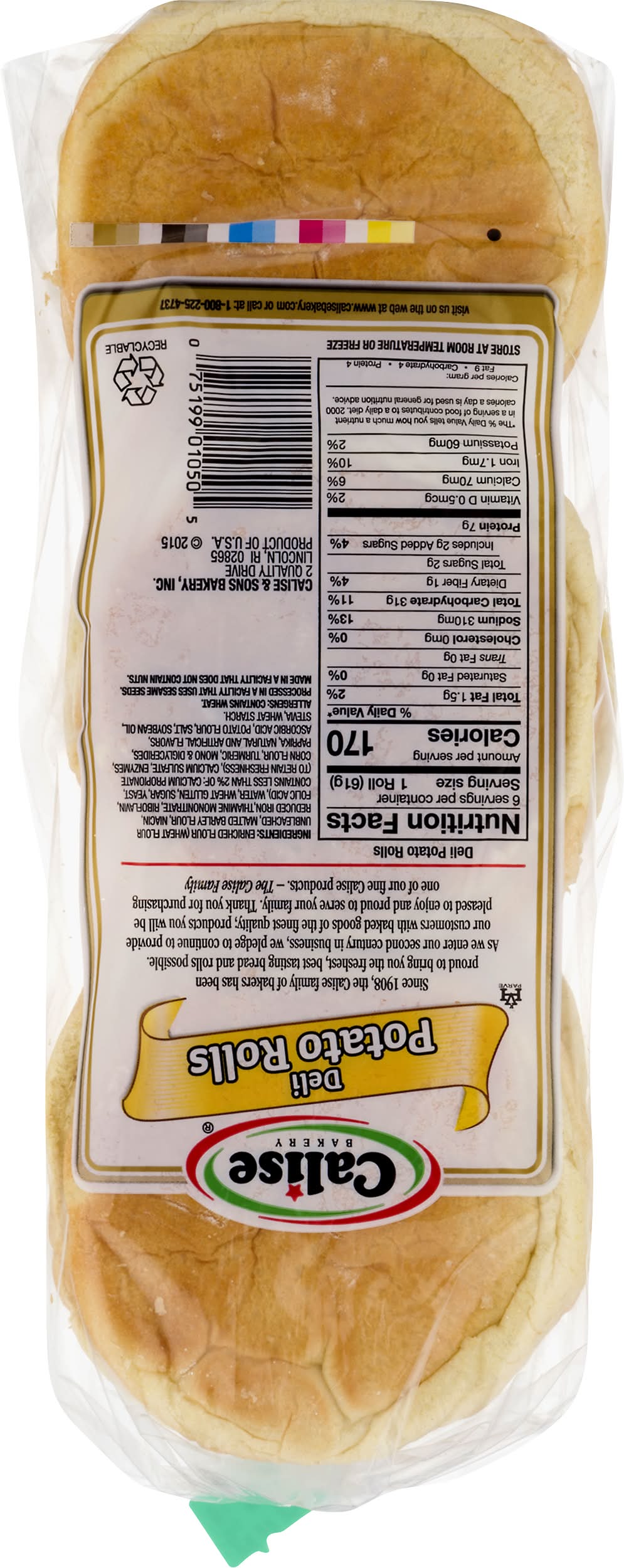 Potato Rolls, Deli • Number of servings: 6 • Calise & Sons Bakery, Lincoln, RI, 02865, Ph: 800-225-4737 • Packaging: Reusable