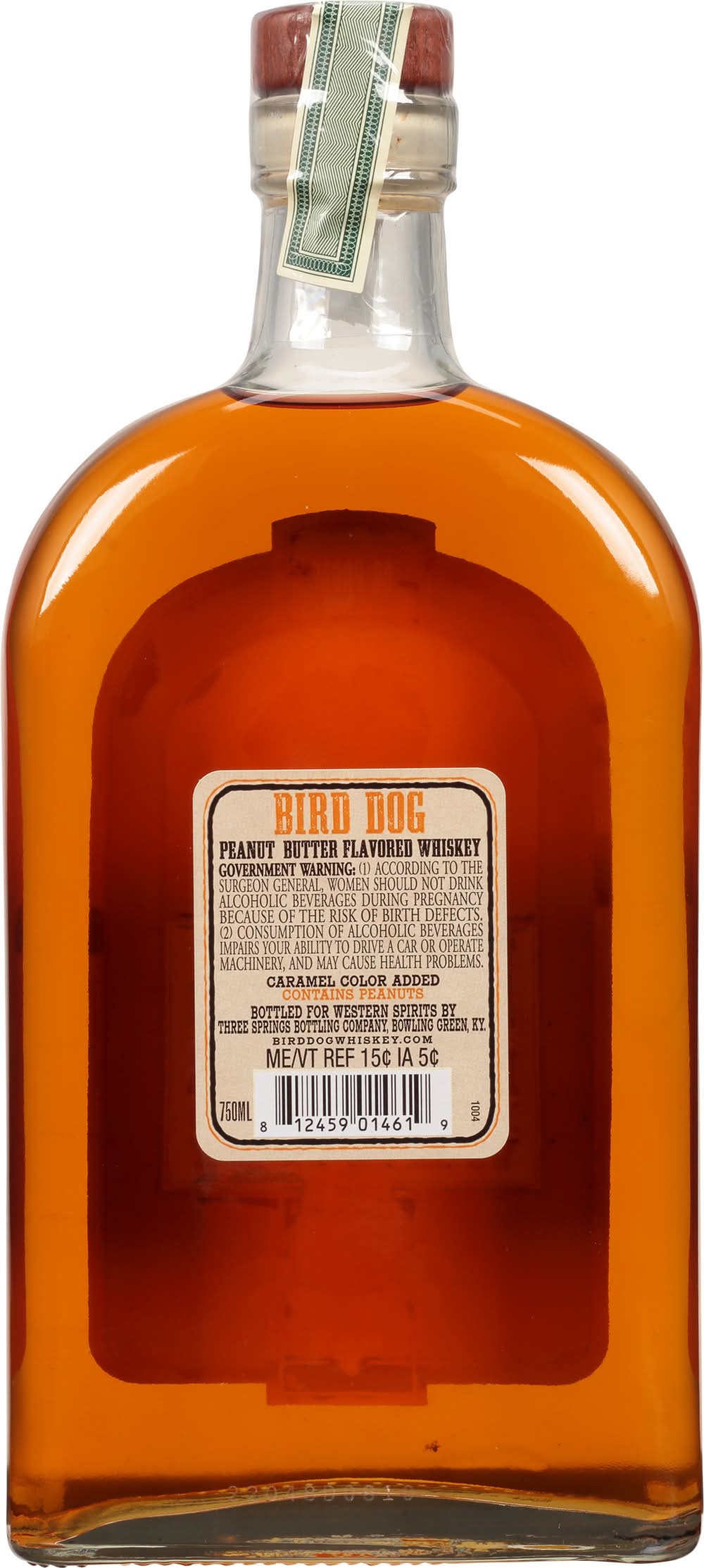 Caramel color added. 80 Bottled for Western Spirits by Three Springs Bottling Company, Bowling Green, KY. • Flavor: Peanut butter • Alcohol by volume: 40%
