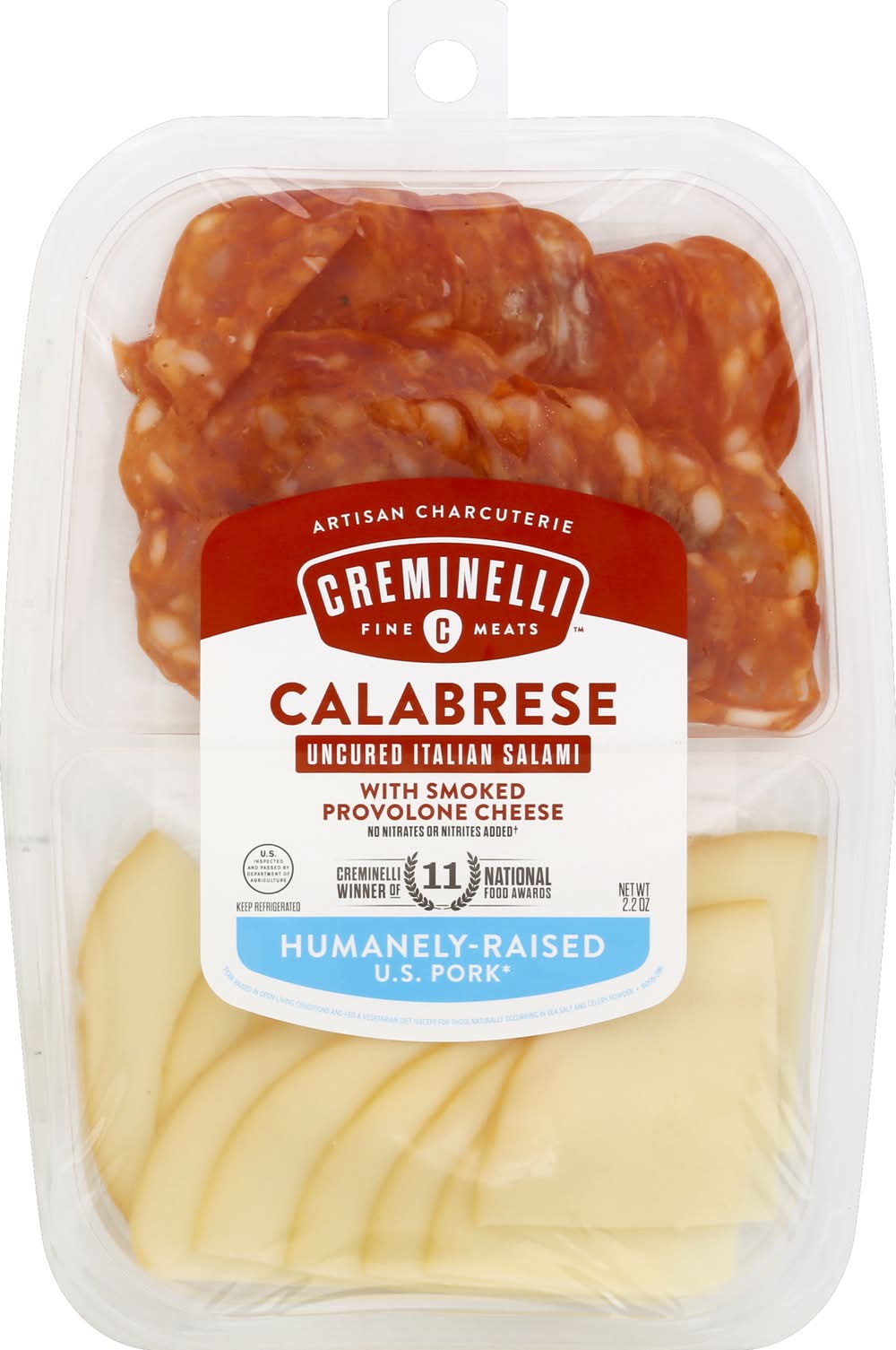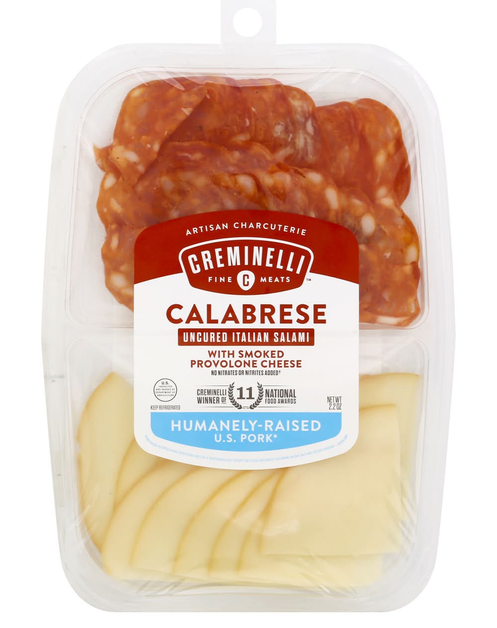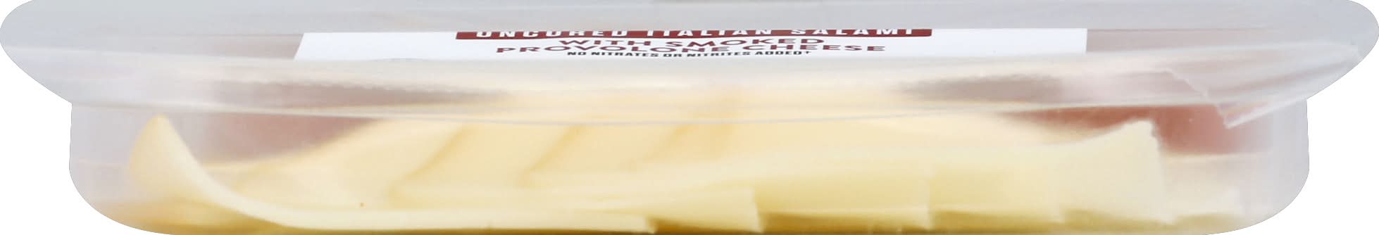 Ingredients: Calabrese Uncured (Except for These Naturally Occurring in Sea Salt and Celery Powder) Salami Ingredients: Pork, Sea Salt, Natural Flavors (Celery Powder), Organic Cayenne, Organic Paprika, Organic Spices, Sugars, Organic Garlic, Lactic Acid Starter Cultures. Smoked Provolone Cheese Ingredients: Cow's Milk, Salt, Rennet Contains: 'Contains Milk'