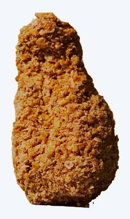 This is ice cream shaped like fried chicken. Waffle ice cream, chocolate covered cookie, caramelized white chocolate, and crushed cornflakes masterfully molded to resemble a drummy.