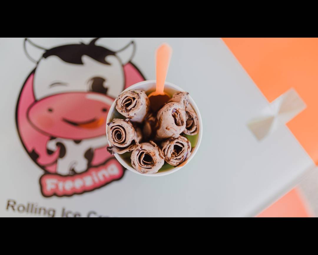 Homemade lactose free rolled ice cream in a 16oz bowl.