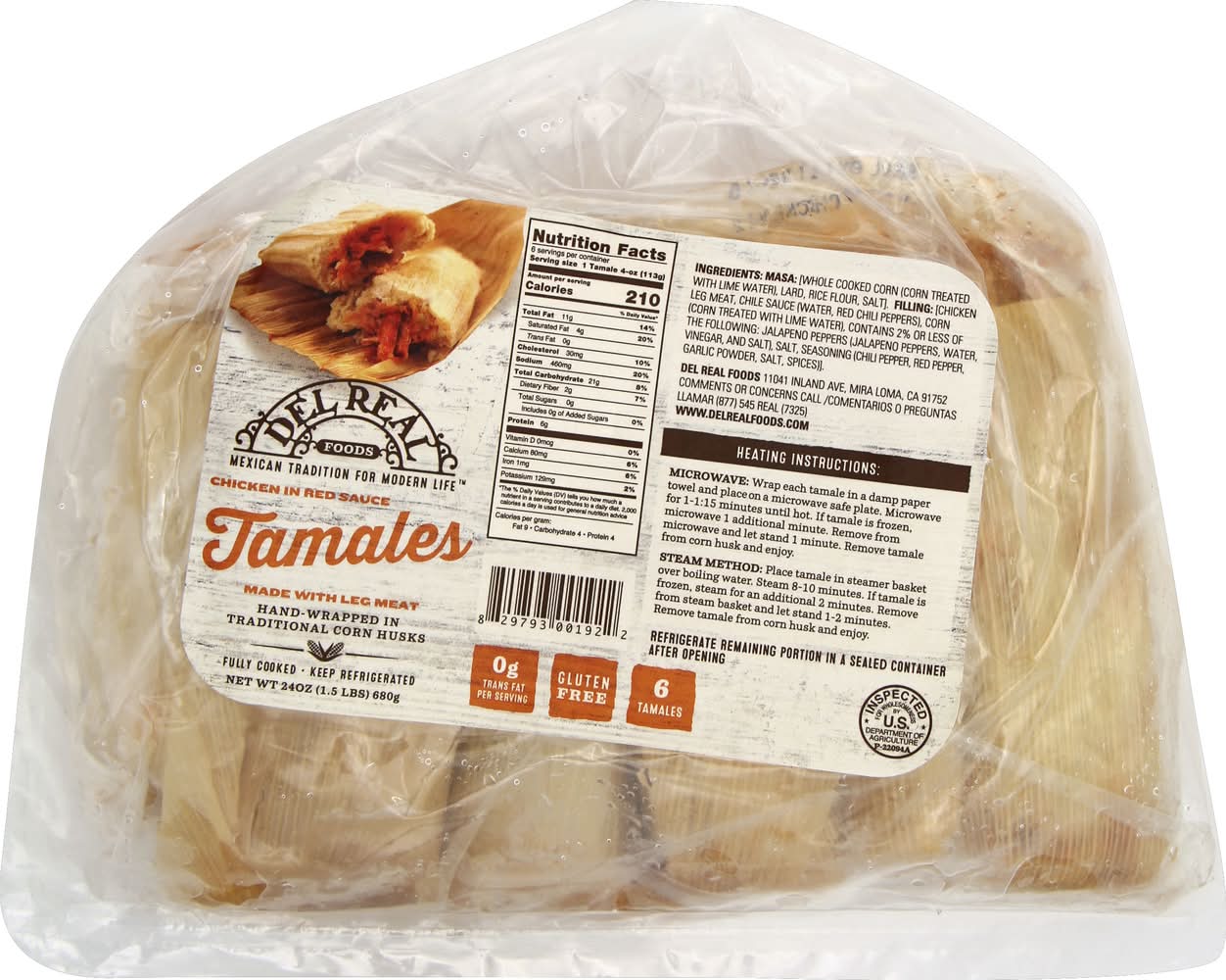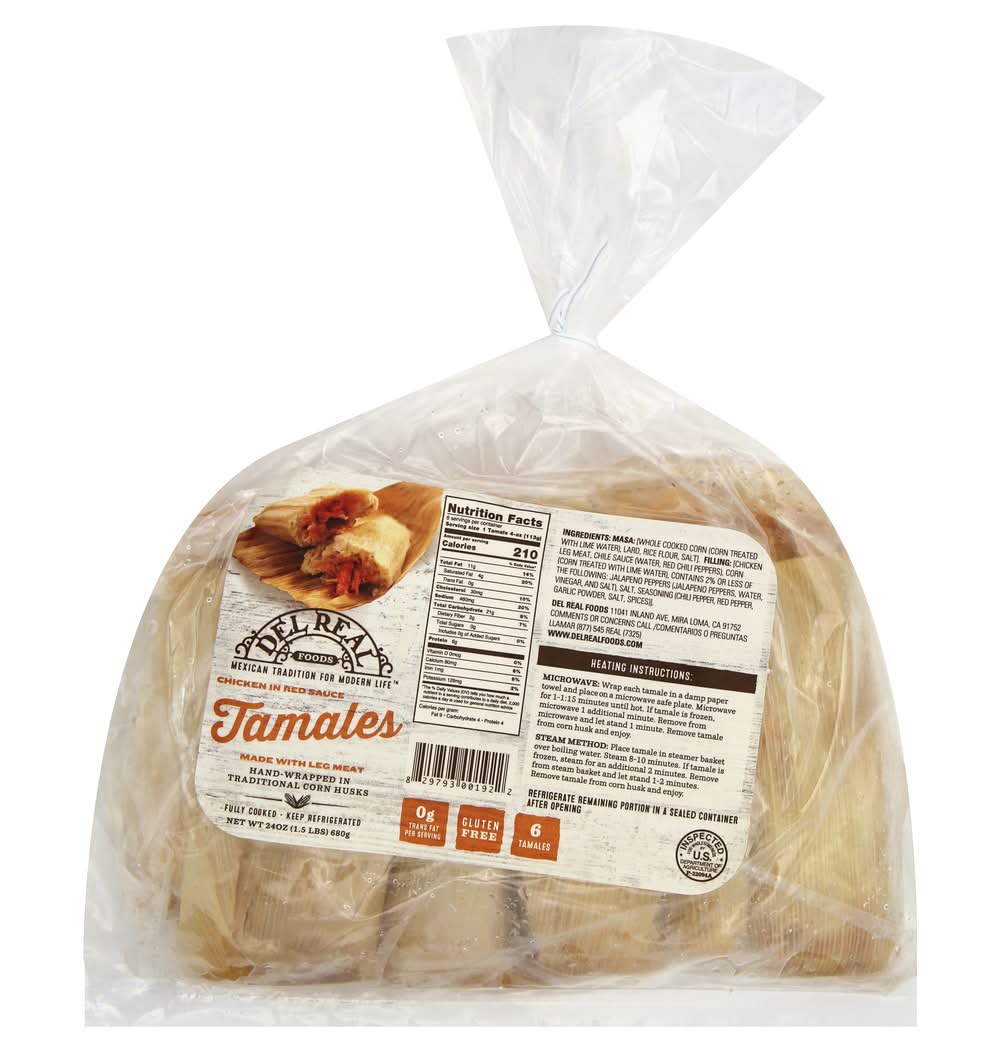 Heating instructions: microwave: wrap each tamale in a damp paper towel and place on a microwave safe plate. microwave for 1 to 1:15 minutes until hot. if tamale is frozen, microwave 1 additional minute. remove from microwave and let stand 1 minute. remove tamale from corn husk and enjoy. steam method: place tamale in steamer basket over boiling water. steam 8-10 minutes. if tamale is frozen, steam for an additional 2 minutes. remove from steam basket and let stand 1-2 minutes. remove tamale from corn husk and enjoy. refrigerate remaining portion in a sealed container after opening. fully cooked. keep refrigerated.