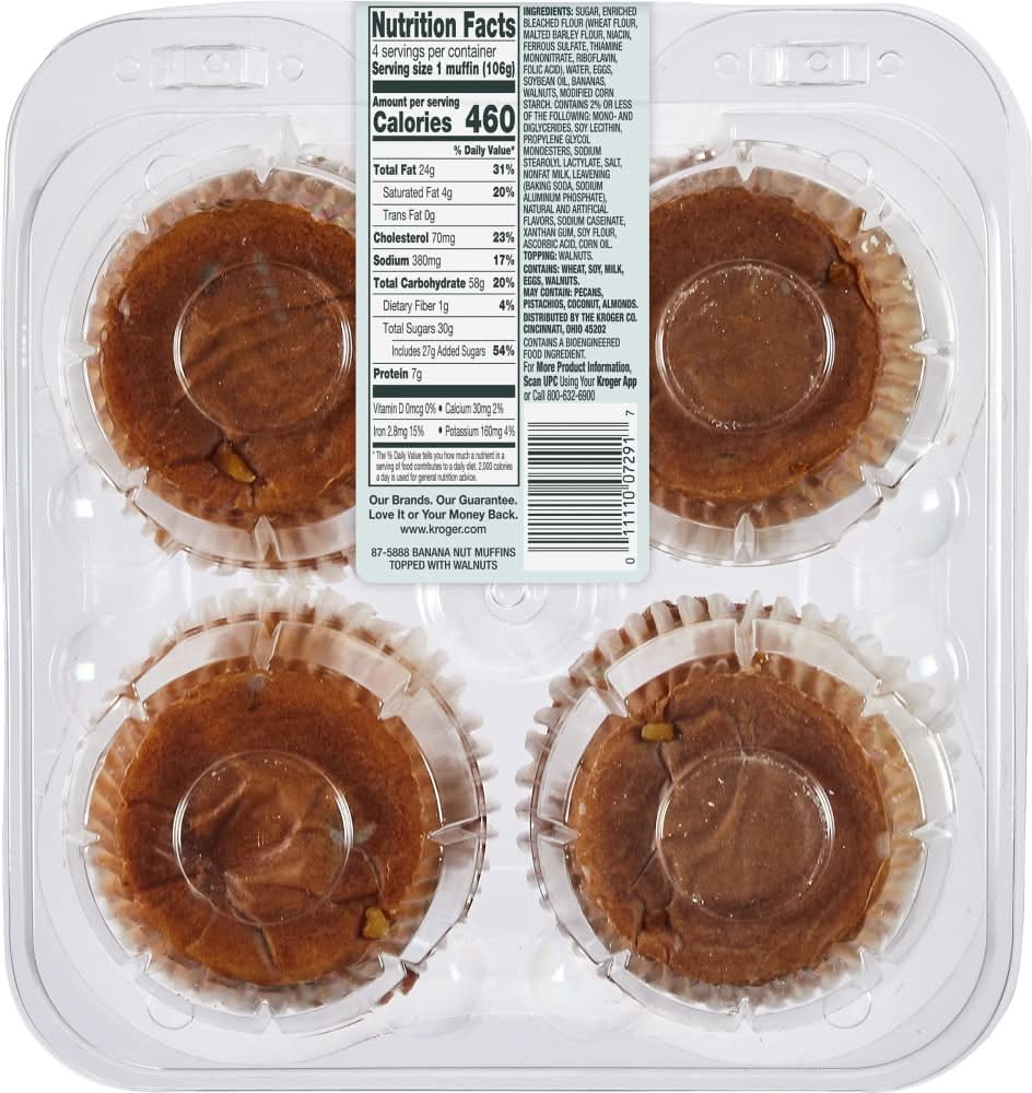 Muffins, Banana Nut • Size: 4 ct / 15 oz • The Kroger Co., Cincinnati OH 45202