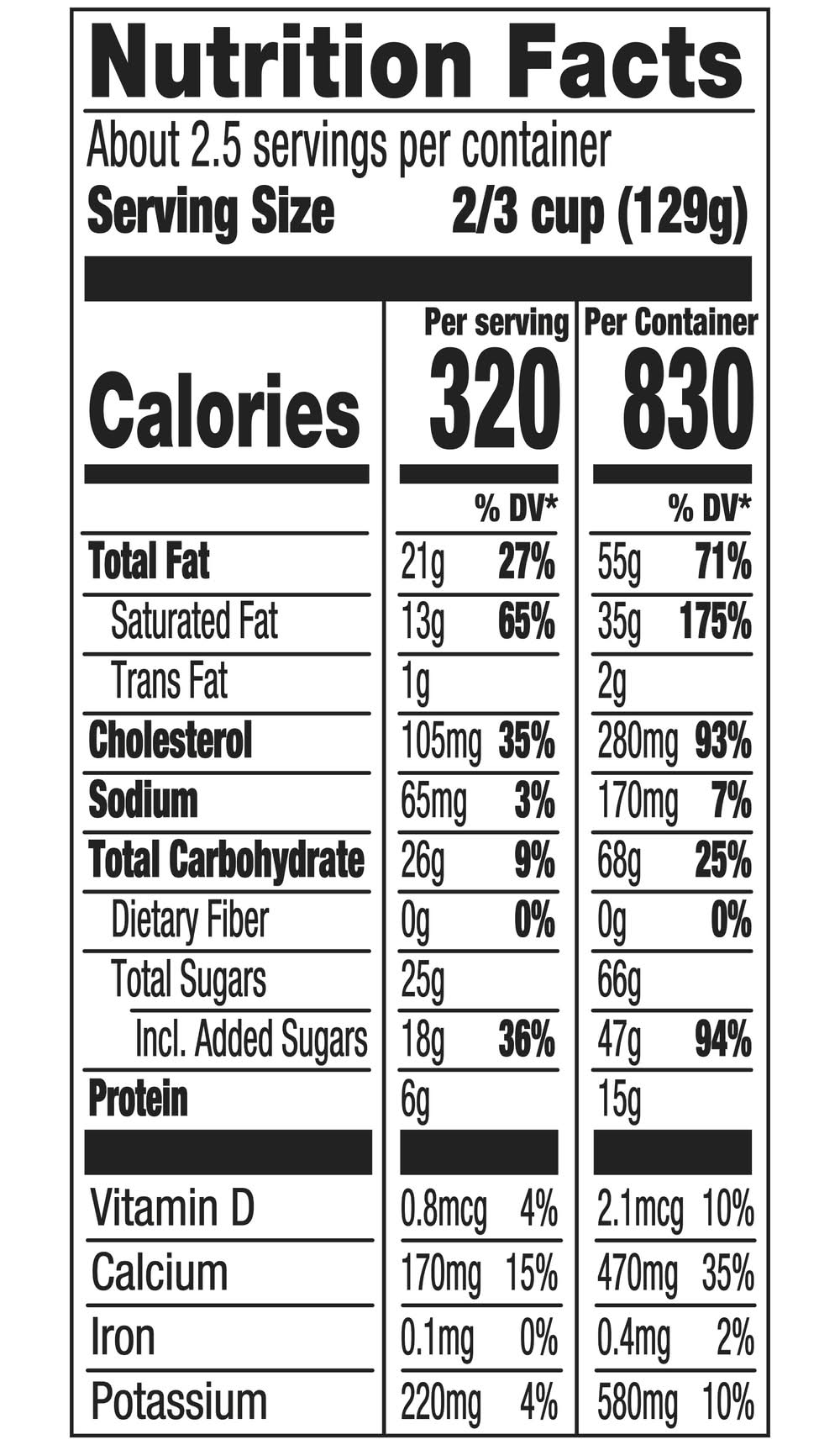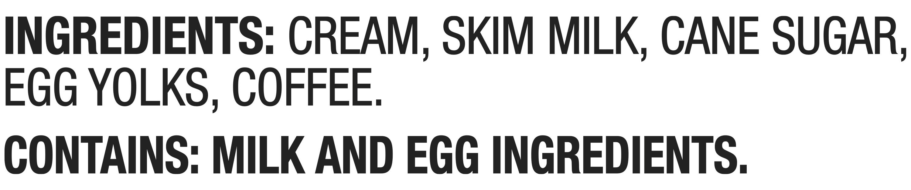 Ingredients: Cream, Skim Milk, Cane Sugar, Egg Yolks, Coffee Contains: Dairy, Eggs, Lactose, Milk