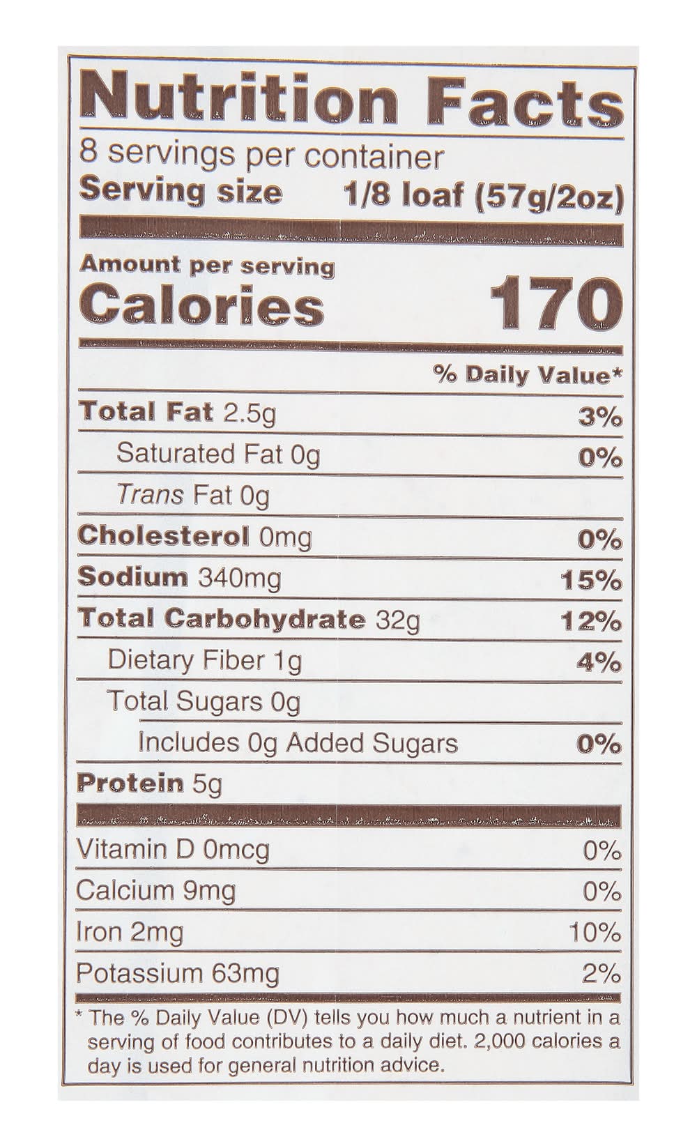 Rich and aromatic bread, baked with whole seasoned roasted garlic cloves and extra virgin olive oil for a moist and savory flavor profile. Established in 1989, this artisan bread boasts a caramelized golden crust, a soft interior, and a rustic appearance. It has been verified by the Non-GMO Project, ensuring adherence to non-GMO standards. This loaf is part of a tradition that began with a passion for high-quality artisan bread and has become a beloved choice across America. • Size: 16 oz • Number of servings: 8 • Aryzta LLC, San Leandro, CA, 94577.