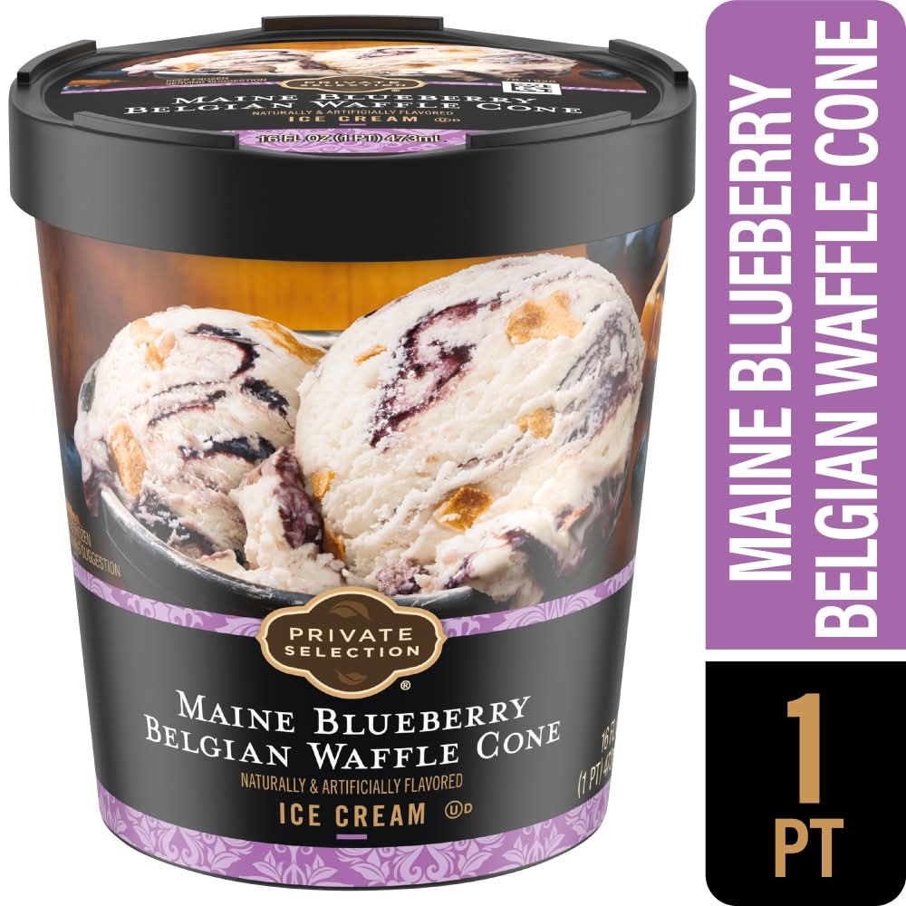 Private Selection Ice Cream, Maine Blueberry Belgian Waffle Cone (16 fl oz)