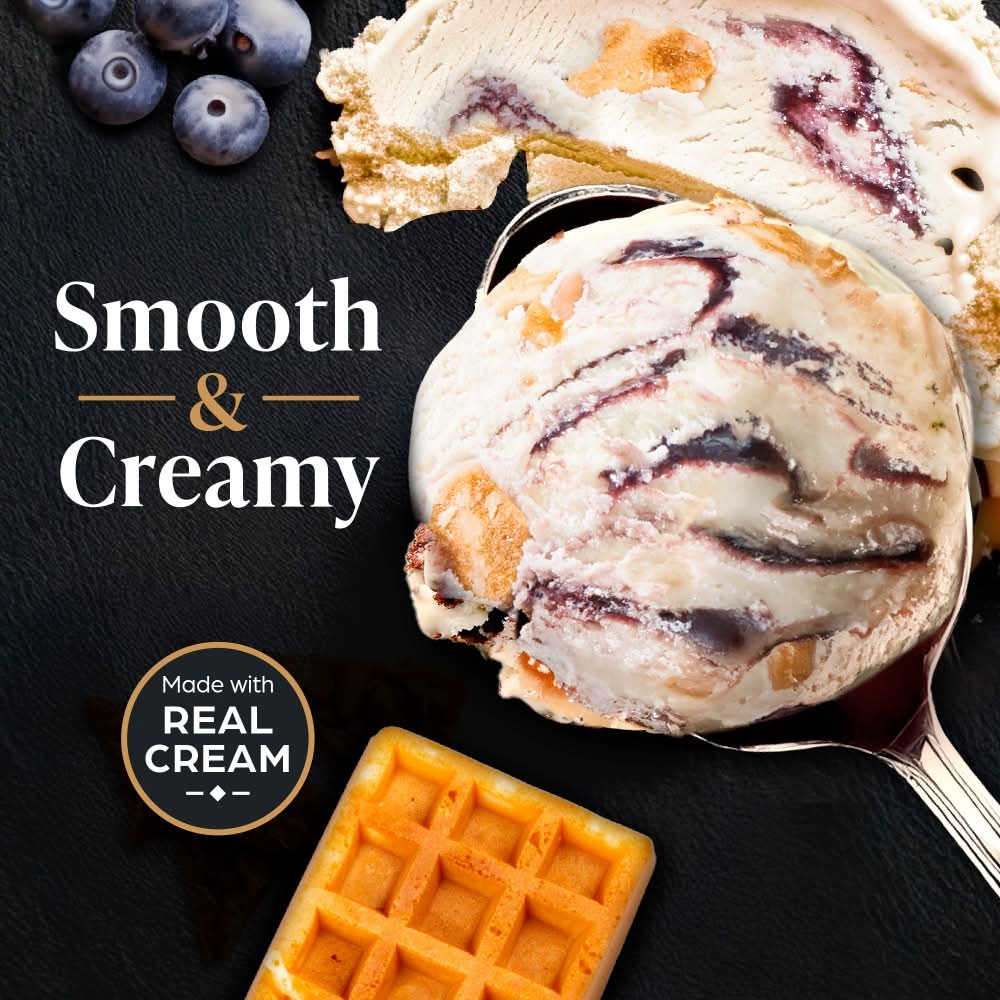 This Ice Cream is a decadent, artisan-inspired indulgence. Bursting with juicy blueberry puree concentrate and sweet hints of natural flavors, this ice cream turns your home into a gourmet dessert spot. The crunchy waffle cone pieces and rich, creamy base of milk, cream, and sugar transport your taste buds to a charming Maine ice cream shop. Savor the sensual combination of flavors with every spoonful. This products are anything but ordinary. Extraordinary guaranteed. Ice Cream Indulge in rich, creamy infused ice cream Bursting with authentic, Maine blueberry flavor for a taste sensation Savor it simply scooped, or impress with a fruity sundae Crafted with premium ingredients for an amazing eating experience. • Flavor: Maine blueberry belgian waffle cone • Size: 16 oz