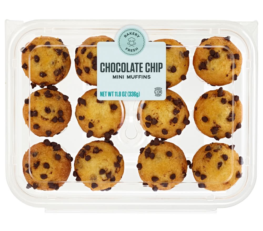 Bakery Fresh Chocolate Chip Mini Muffins are every breakfast lover's delight! Bursting with tasty chocolate chips, these mini muffins are just the right size to satisfy. Baked to perfection for a crisp top but a soft, moist inside. Enjoy an easy, tasty start to your day with these scrumptious chocolate chip muffins!12 ct / 11.8 oz Container of Bakery Fresh Chocolate Chip Mini MuffinsBite-size fun exploding with quality semisweet chocolate chipsBaked for an irresistible, homemade-like tasteGreat for on-the-go munching or snack time Size: 12 ct / 11.8 oz