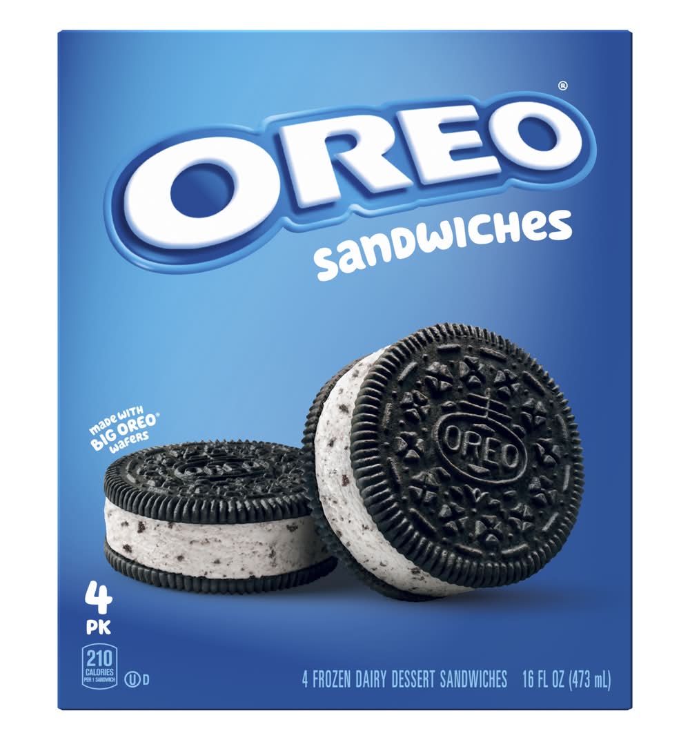 Oreo Frozen Dairy Dessert Sandwiches (16 fl oz, 4 ct)