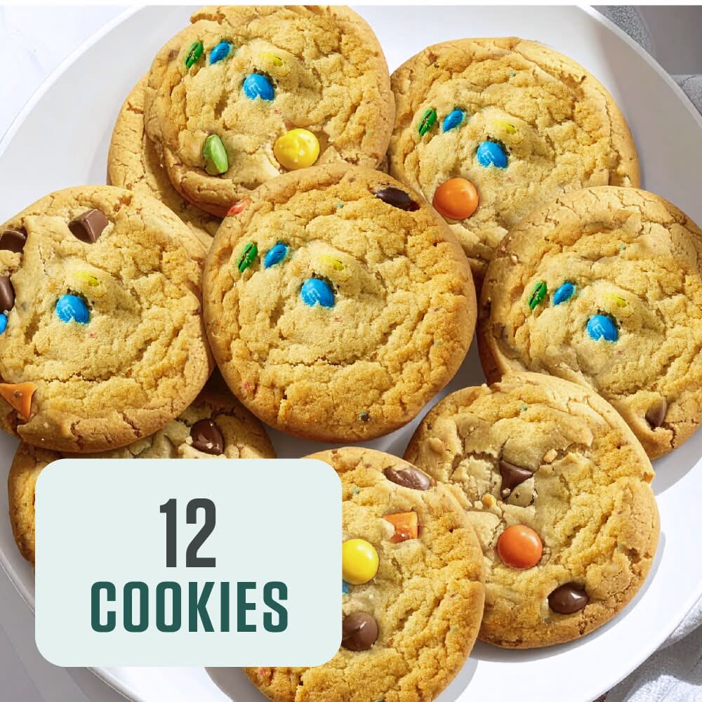 Bakery Fresh Cookies Made With M&M's® Chocolate Candies are delightfully sweet for your treat cupboards at home. These bakery cookies are fun to crunch, munch, or even crumble atop ice cream for a colorfully delicious dessert. Easy to enjoy, just pop open the package and eat how many you'd like. With these lively treats, dessert time is always fun and tasty!12 count of Bakery Fresh Cookies Made With M&M's® Chocolate CandiesBakery fresh and ready for enjoyment anytimePacked with delicious, fun-filled M&M's® Chocolate CandiesA delightful bakery cookie treat for sweets lovers, kids, and kids-at-heart Size: 12 count