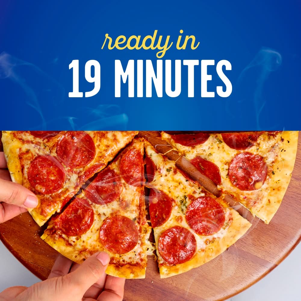 Kroger® Pepperoni Pizza offers a feast of flavor with each bite. Enjoy delicious layers of a four-cheese blend and sliced pepperoni on a wood fired pizza crust. Pop it in the oven and get a hot, tasty meal that's ready in 19 minutes. It's made with rBST-free cheeseˆ for great taste! It's a yummy choice for lunch, dinner, or a snack. Kroger® products are tried, tested and loved by you - quality guaranteed.ˆCheese from cows not treated with rBST. No significant difference has been shown between milk derived from rBST-treated and non-rBST-treated cows.25.6 oz Package of Kroger® Pepperoni PizzaEnjoy a four-cheese blend and sliced pepperoni on a wood fired pizza crustEasy to heat in the oven and ready in 19 minutes for a quick mealMade with rBST-free cheeseˆKroger® quality you can trust Size: 25.6 oz
