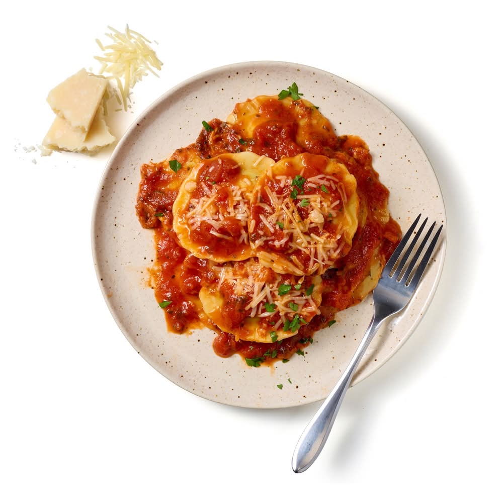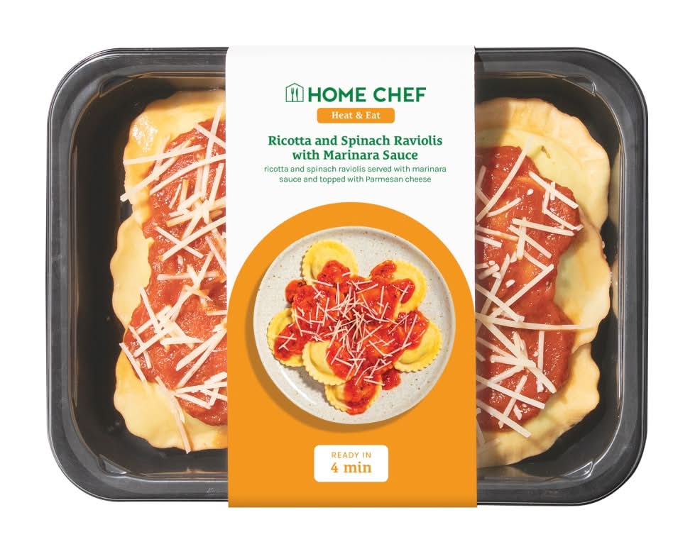 - Home Chef makes home cooking achievable for everyone with meal options that fit your lifestyle. - Enjoy the flavors of home cooking without the hassle with Home Chef’s quick, easy meals. - Perfect for lunch or dinner, Heat & Eat meals are a quick way to get a tasty meal on the table. - With flavorful recipes ready in minutes, Heat & Eat meals make for a quick-And-easy entrée. - Home Chef’s Ricotta And Spinach Raviolis with Marinara Sauce takes pillowy raviolis And fills them with tasty ricotta And spinach before topping it all with tasty marinara sauce.