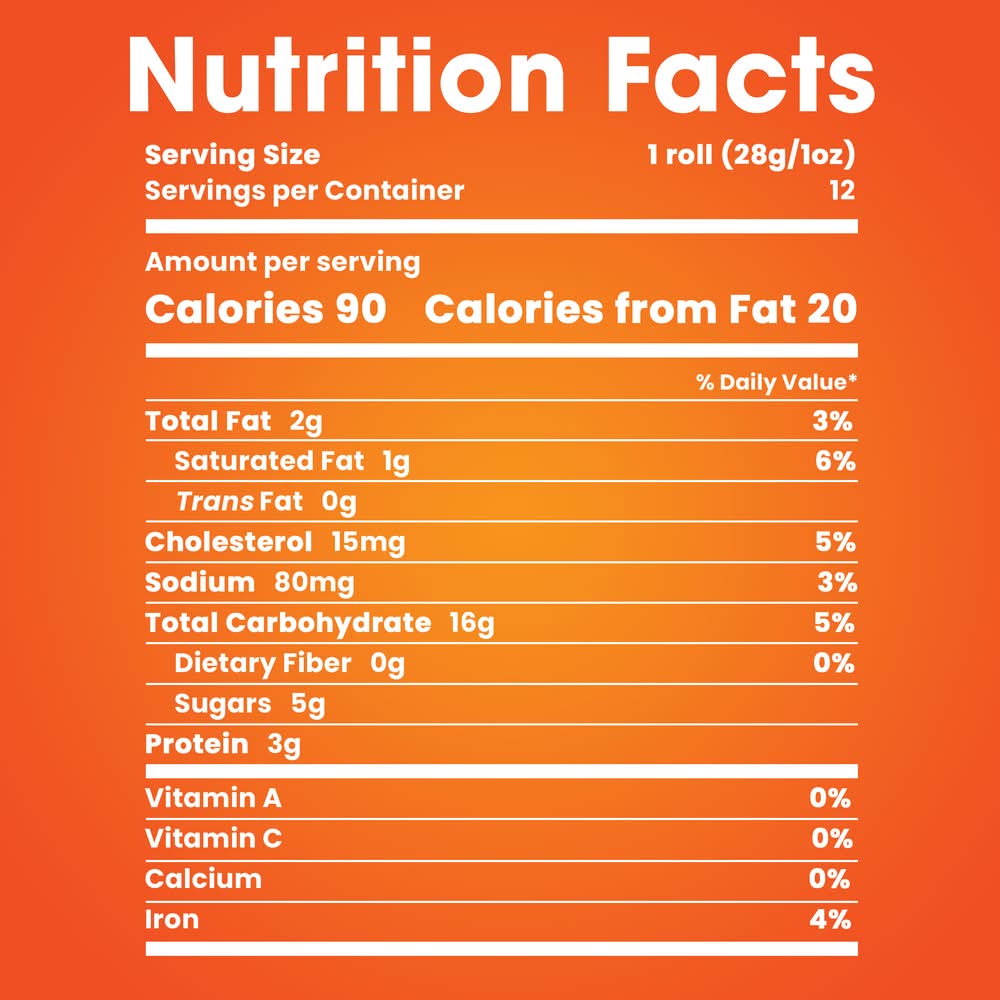 Per 1 Roll Serving: 90 calories; 1 g sat fat (5% DV); 75 mg sodium (3% DV); 5 g sugars. No trans fats. Est. 1950. Hilo, Hawaii. Original recipe. No high fructose corn syrup. No artificial dyes. Our story. Back in the 1950 s In Hilo, Hawaii, a man named Robert R. Taira had a passion for baking. He worked tirelessly to create a bread that was soft, sweet and irresistible. After years of making his bread in Hawaii, Robert decided to expand to the mainland. Today, the Taira family continues his legacy of creating irresistible products made with Aloha Spirit and enjoyed by millions. Recyclable package. Product of USA. • Size: 12 oz • King's Hawaiian Bakery West, Inc., 19161 Harborgate Way,Torrance,CA,90501 • Packaging: Reusable