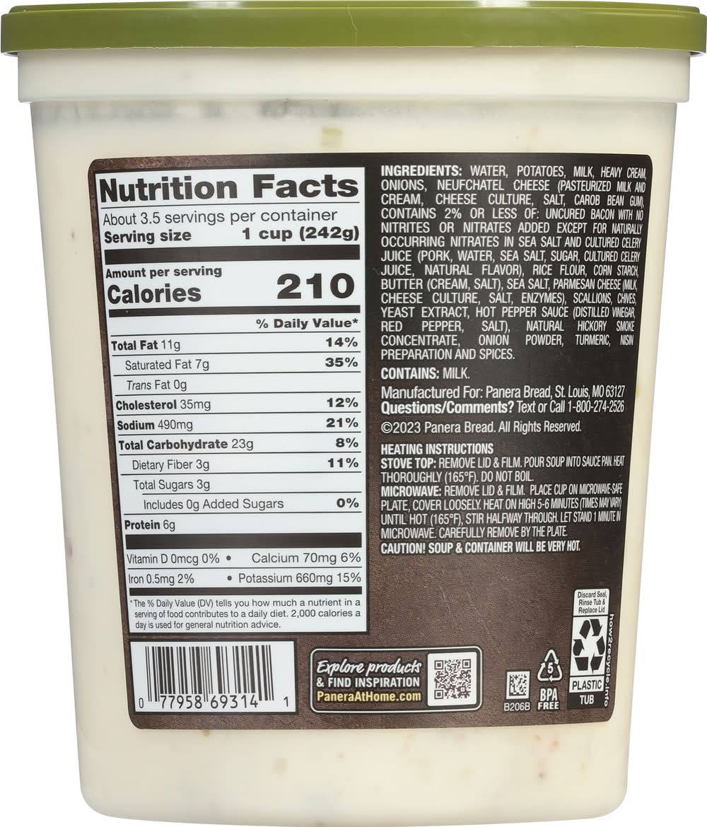 Soup, Baked Potato • Size: 32 oz • Panera Bread, St. Louis, MO, 63127 • Packaging: Reusable