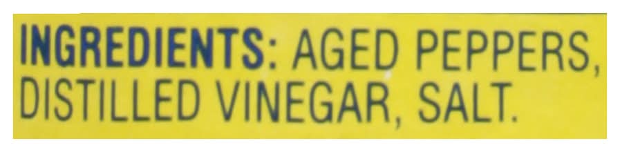 Ingredients: Aged Peppers, Distilled Vinegar, Salt
