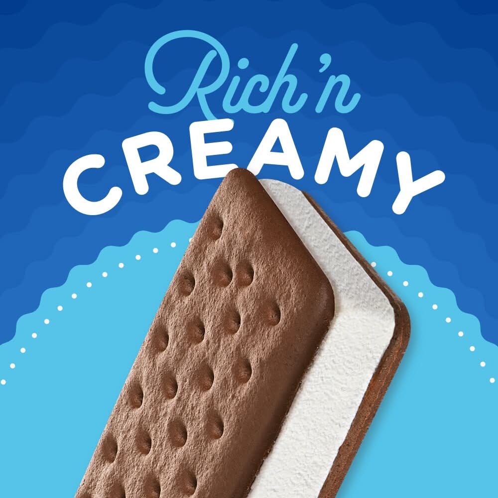 Vanilla Frozen Dairy Dessert Sandwiches take snack-time to the next level! A lusciously rich'n creamy center of vanilla flavored deliciousness, it's a dream come true for taste buds. The sweet filling is hugged tightly by two chocolaty wafers offering a rich texture with every bite. They're a great cure for a snack attack. Products are tried, tested and loved by you - quality guaranteed. Vanilla Frozen Dairy Dessert Sandwiches Chocolaty wafers combine with tasty vanilla flavored frozen dairy dessert Perfect treat for a sunny day or movie night Great as is or crumbled over your favorite dessert quality you can trust • Flavor: Vanilla • Size: 12 ct