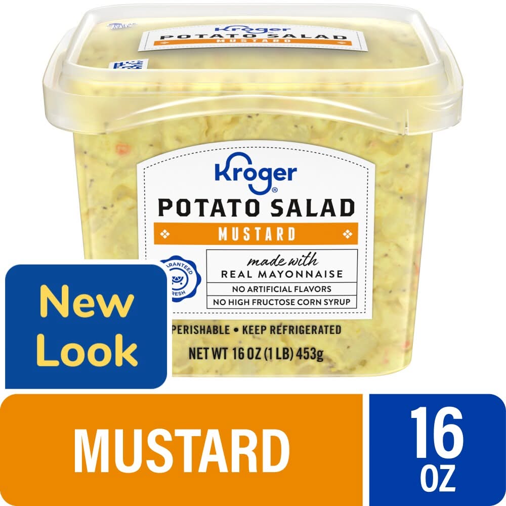 This Mixes Potatoes With Tasty Mustard For A Dish That Is So Tasty. Tangy Distilled Vinegar, Creamy Real Mayonnaise, Crisp Bell Peppers, And Celery Combine To Add Flavor. Enjoy A Quick, Ready-To-Eat Potato Salad That Will Quickly Become One Of Your Favorite Sides. Kroger Products Are Tried, Tested And Loved By You-Quality Guaranteed. 16 Oz Tub Of Kroger Mustard Potato Salad Creamy, Tangy Dish Made With Potatoes, Tasty Mustard, And Real Mayonnaise Excellent Backyard Barbeque Partner make It One Of Your Favorite Sides Kroger Quality You Can Trust • Flavor: Mustard • Size: 16 oz