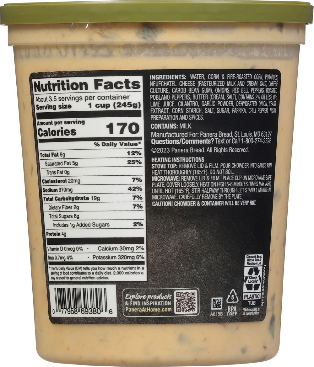 Panera Bread Mexican Style Street Corn Chowder Soup Cup (32 oz)