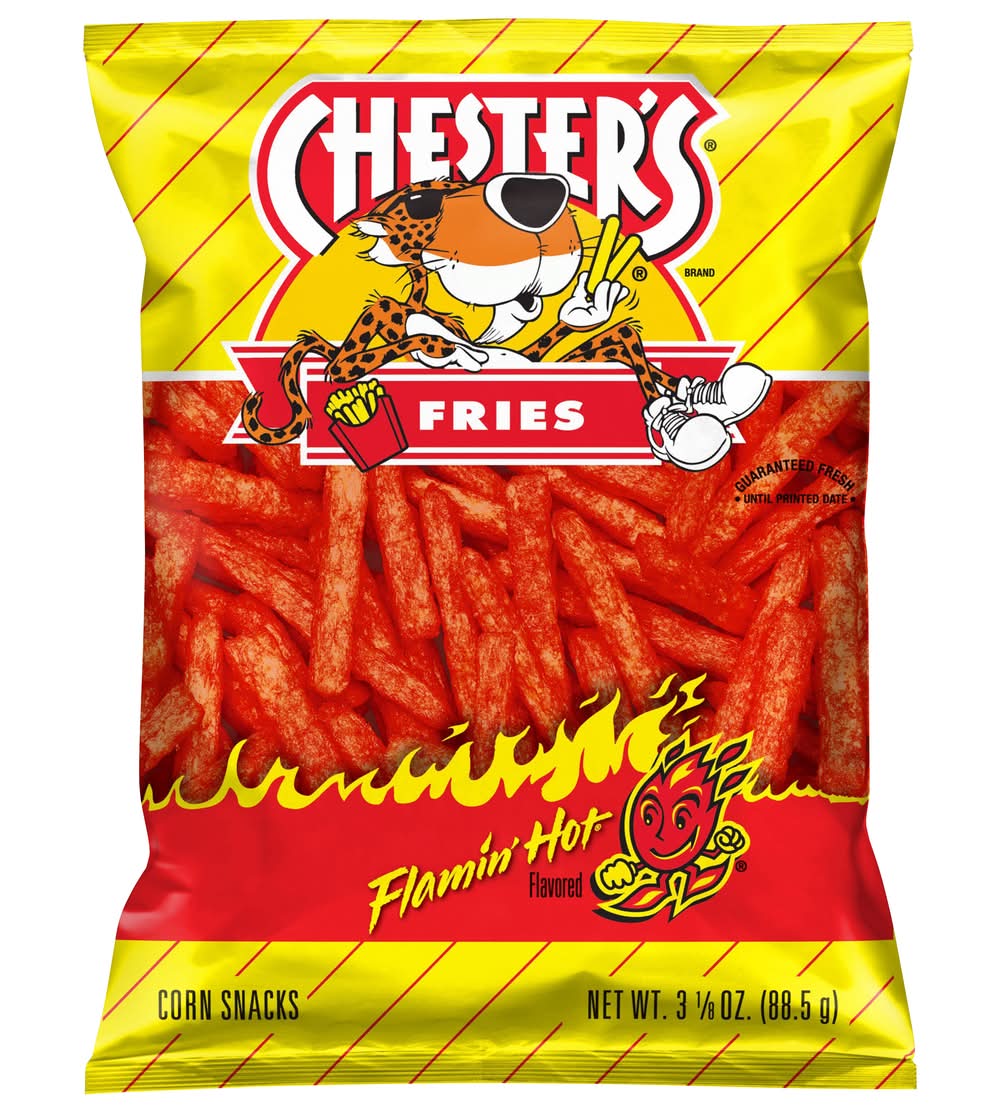When Chester Cheetah puts his name on a snack, you can count on a bold and cheesy flavor like you’ve never tasted. Chester's® snacks are made with a special blend of real cheese seasoning to give each bite the perfect pop and zing.Flamin' Hot®Gluten-free • Flavor: Flamin' hot • Size: 3.125 oz