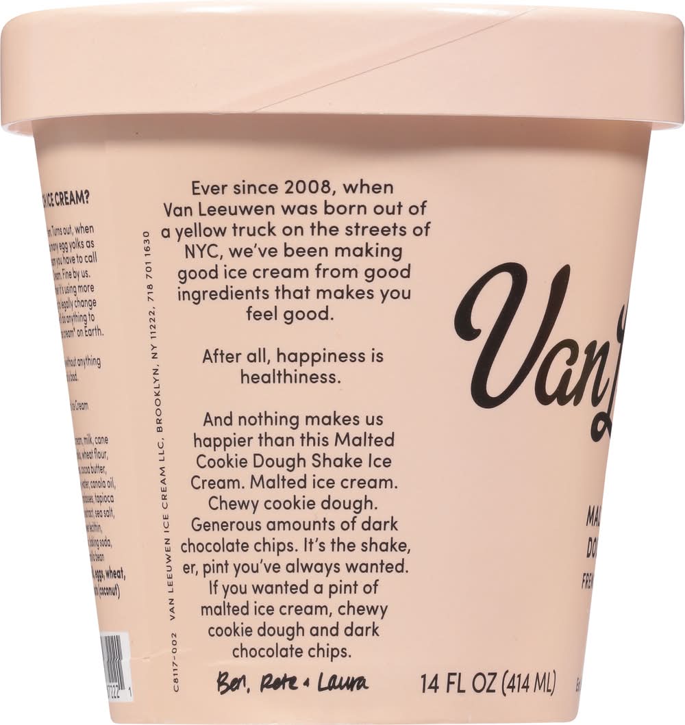 French Ice Cream, Malted Cookie Dough Shake • Brand: Van leeuwen • Number of servings: 2 • Van Leeuwen Ice Cream, Brooklyn, NY, 11222, Ph: 718-701-1630