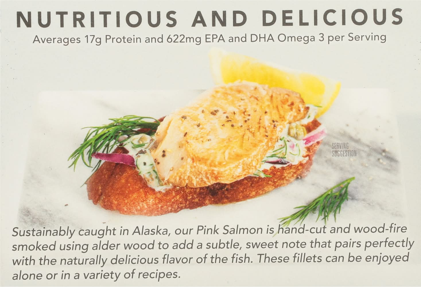 Ingredients: Smoked Wild Pink Salmon (Oncorhynchus Gorbuscha), Organic Extra Virgin Olive Oil, Water, Sea Salt Contains: Fish, Salmon