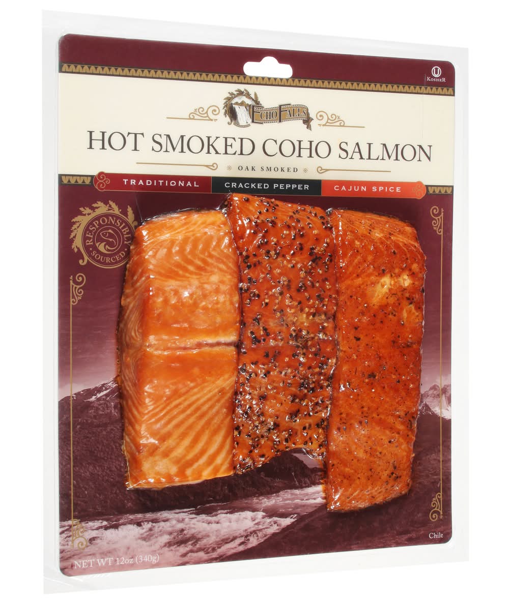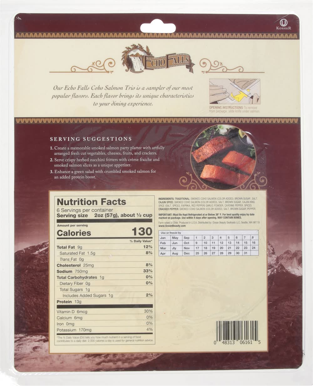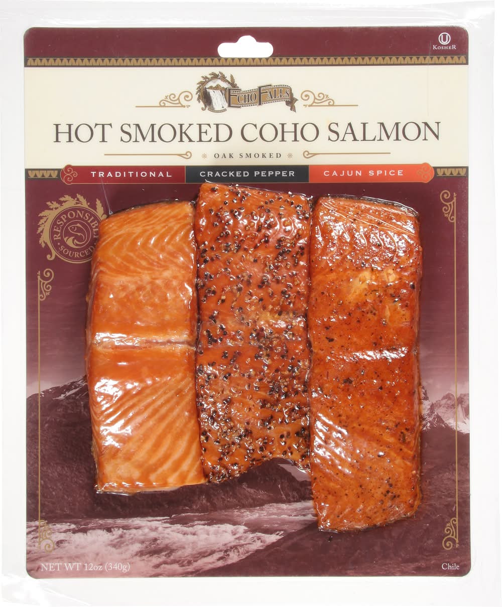 Echo Falls Hot Smoked Coho Salmon Trio pack, Traditional-Cracked Pepper-Cajun Spice (12 oz)