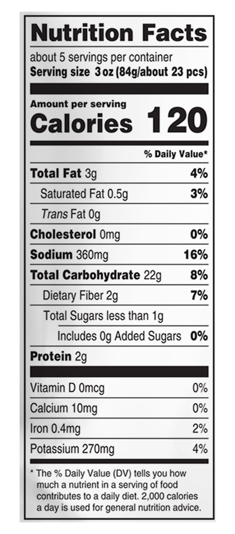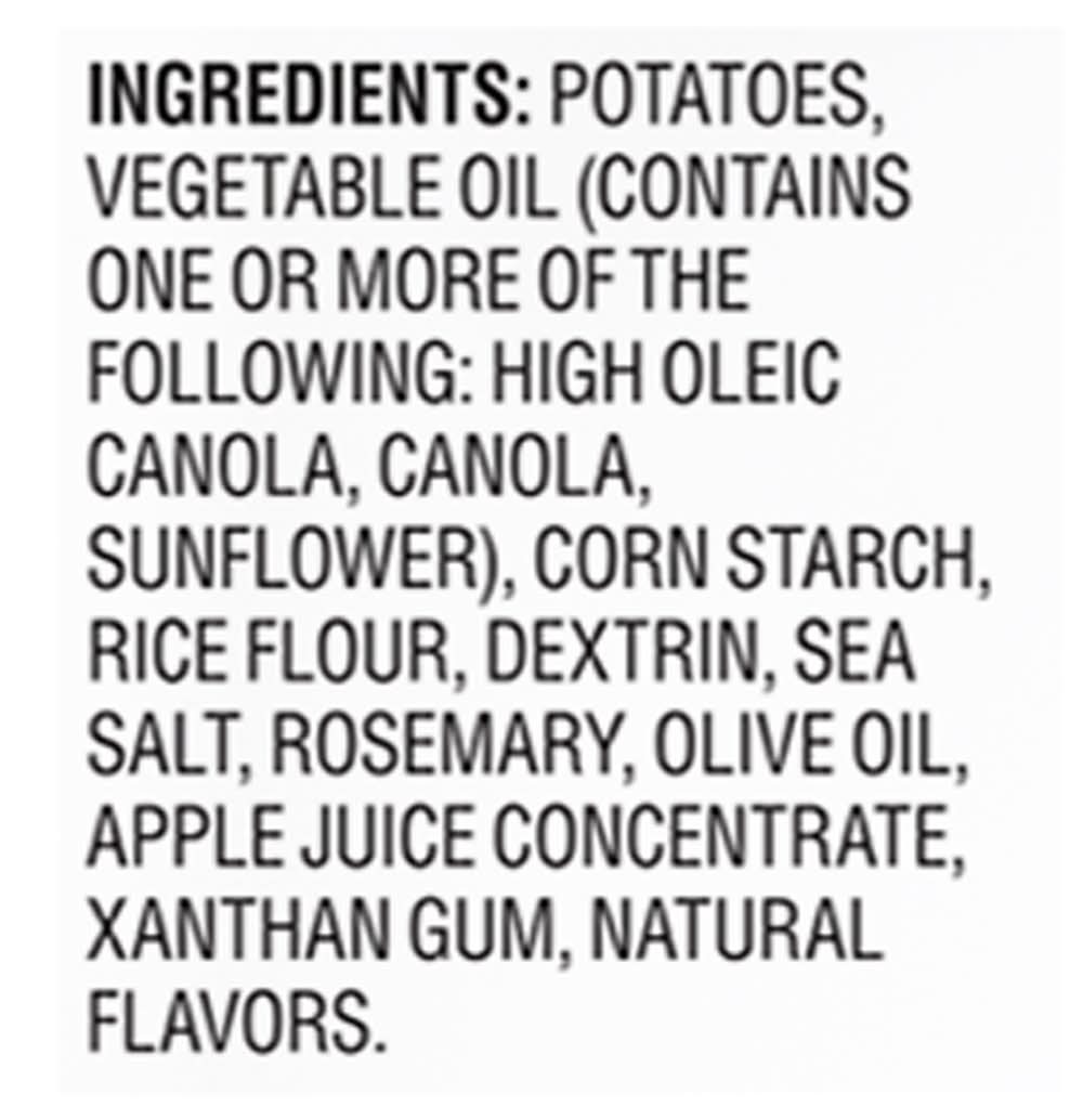 Ingredients: Potatoes, Vegetable Oil (Contains One or More of the Following: High Oleic Canola, Canola, Sunflower), Corn Starch, Rice Flour, Dextrin, Sea Salt, Rosemary, Olive Oil, Apple Juice Concentrate, Xanthan Gum, Natural Flavors