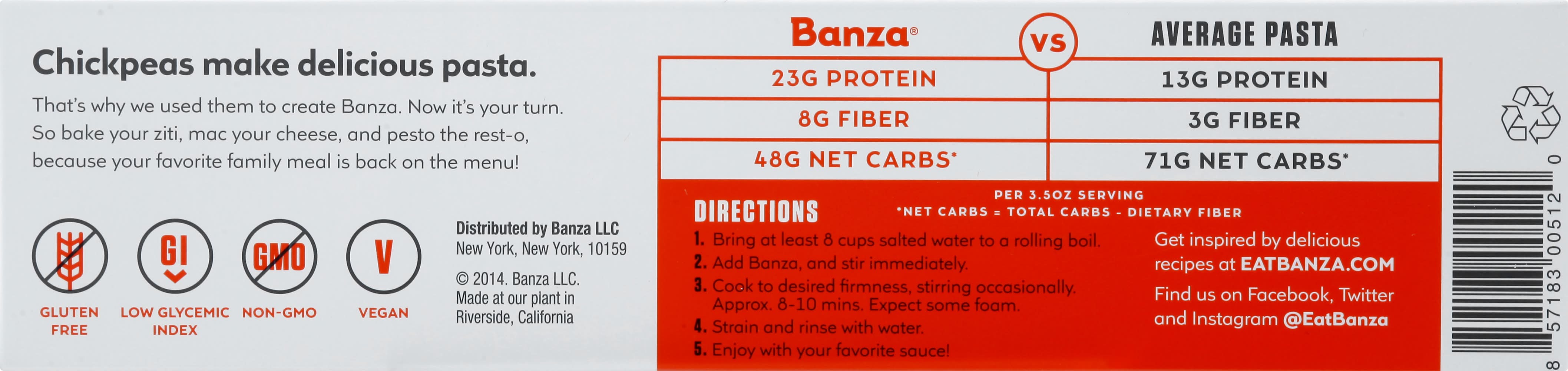 • Flavor: Chickpeas • Banza Llc, New York,NY,10159 • Packaging: Reusable