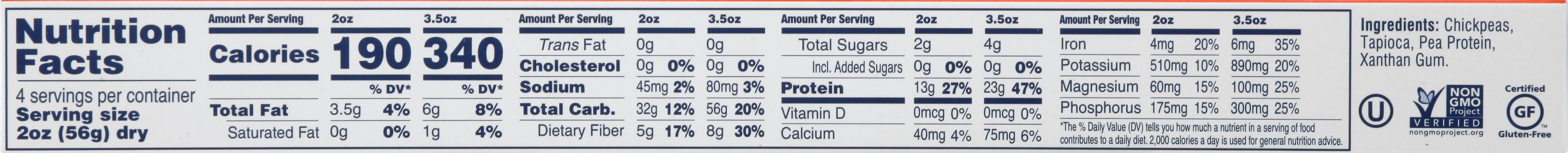 Ingredients: Chickpeas, Tapioca, Pea Protein, Xanthan Gum
