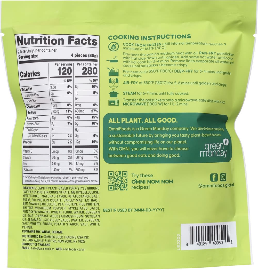OmniFoods Plant Based Pork Style Ground and Vegetable Potsticker (7.05 oz, 10 ct)