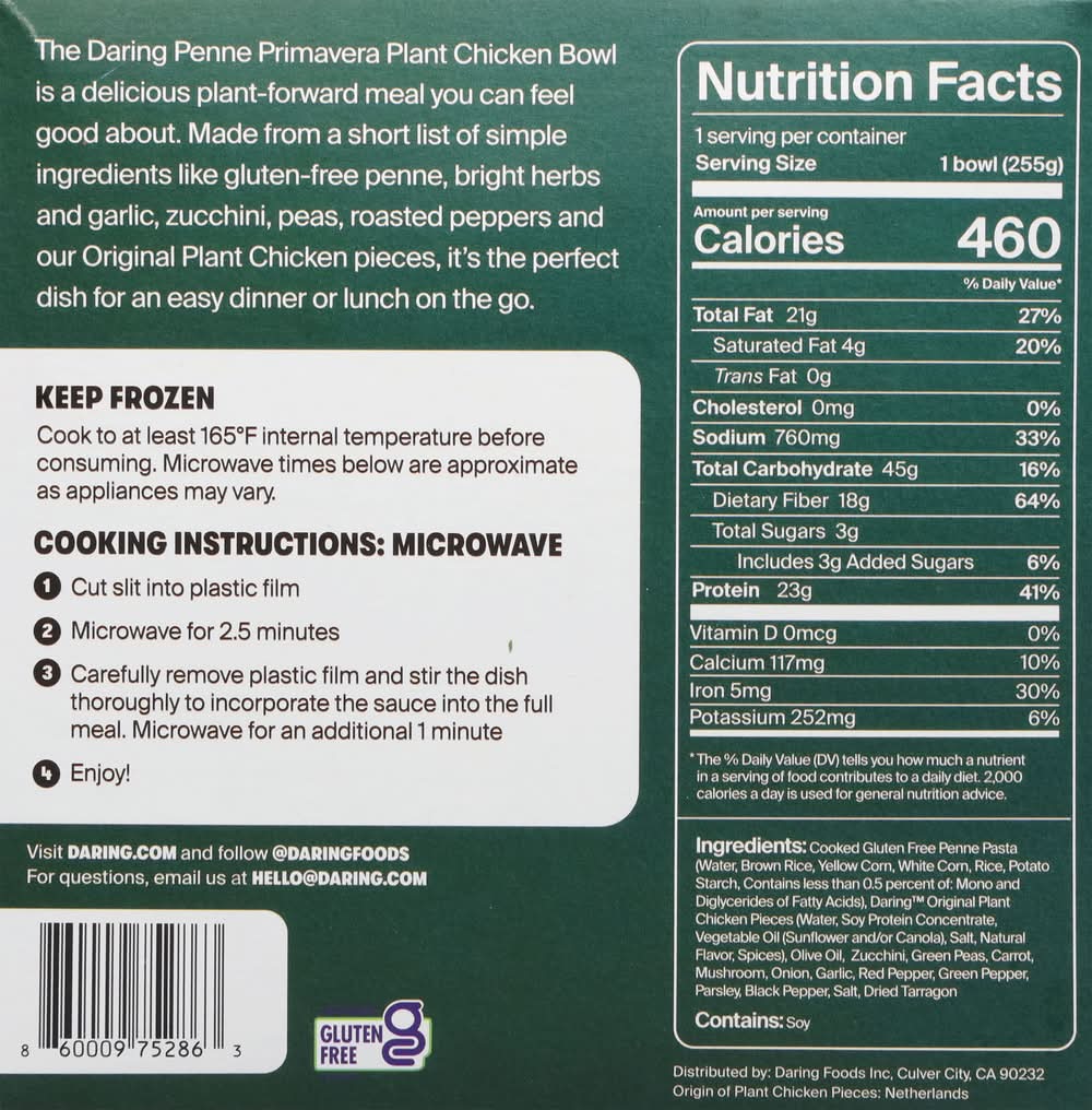 Daring Penne Primavera, Plant Chicken Bowl (9 oz)