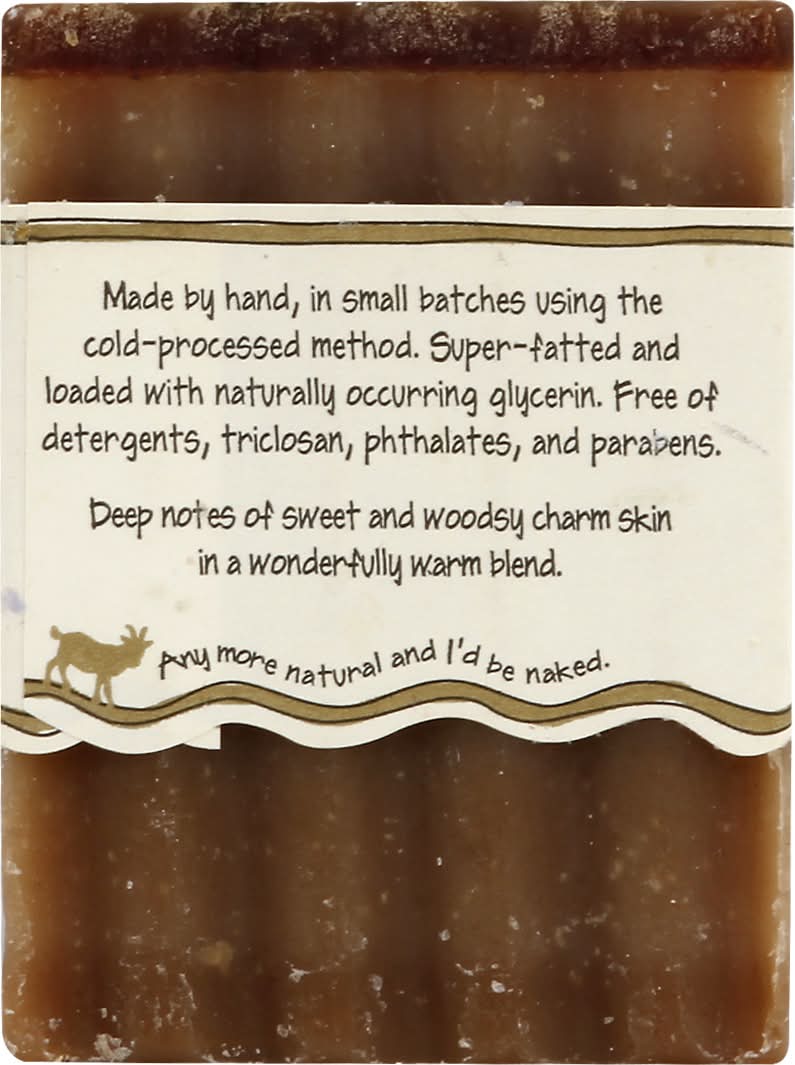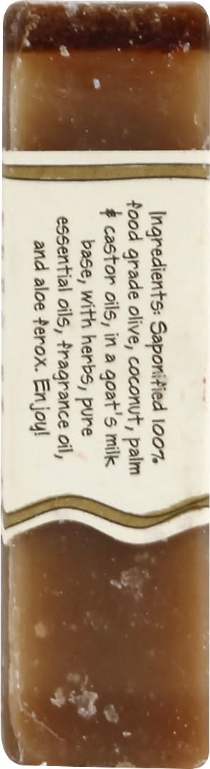 Ingredients: Saponified 100% Food Grade Olive, Coconut, Palm & Castor Oils, in a Goat's Milk Base, with Herbs, Pure Essential Oils, Fragrance Oil, and Aloe Ferox, Enjoy! Contains: Tree Nuts, Milk