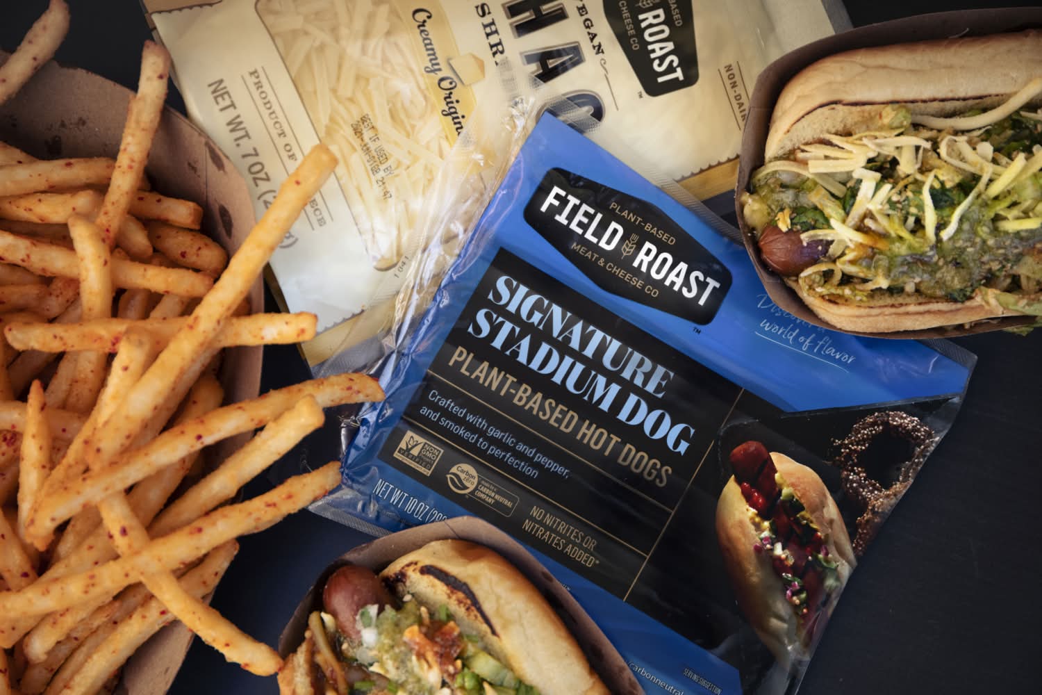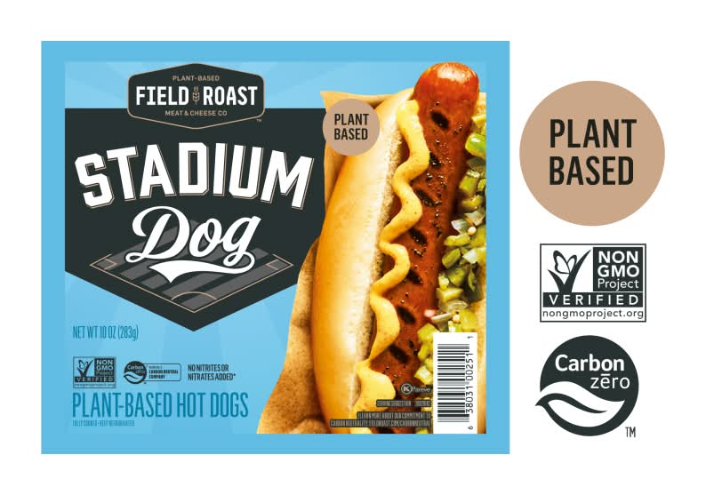 Bite into plant-based protein perfection with Field Roast™ Signature Stadium™ Plant-Based Hot Dogs. These meat alternative hot dogs are naturally hardwood smoked and boldly seasoned, making each juicy mouthful a flavorful indulgence you can feel good about. Grill up these vegan hot dogs and pile them high with fixings, or sizzle them on the stovetop to slice into your favorite pasta dish—the plant-based meal possibilities are endless. Since 1997, Field Roast™ brand has crafted plant-based meats and cheeses from grains, fresh-cut vegetables, herbs, and spices, honoring their culinary roots to create authentic sensory experiences people crave. Number of servings: 6