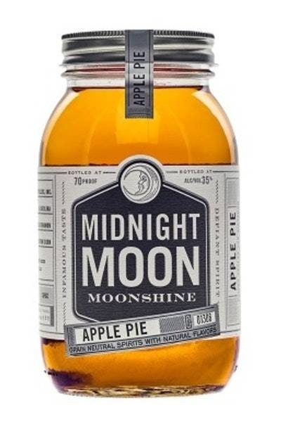 Midnight Moon Apple Pie Moonshine is a crafted spirit that combines the essence of apple juice and a cinnamon stick, maturing into a 70 proof beverage that mirrors the flavor of homemade apple pie. • Flavor: Apple pie • Alcohol by volume: 35%