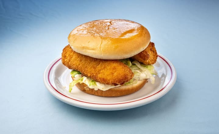 Two sustainable cod fillets with lettuce and Frisch’s Original Tartar Sauce.