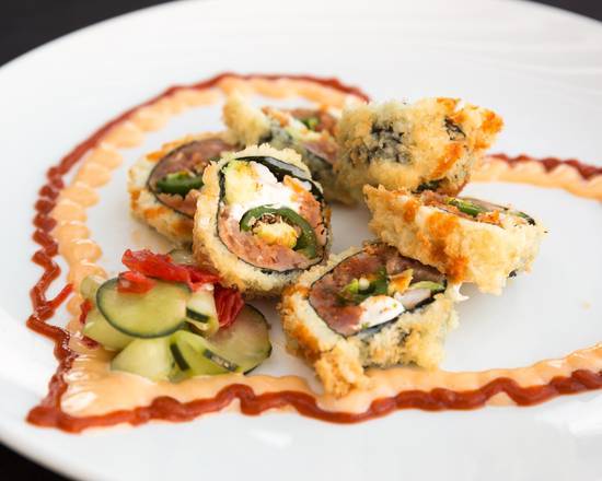 Spicy tuna, fresh chili, and cream cheese shrimp. Whole roll tempura with spicy Sauce.