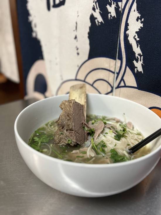 A hearty Vietnamese soup with rare steak, brisket, tendon, meatballs, and tender beef short rib.
