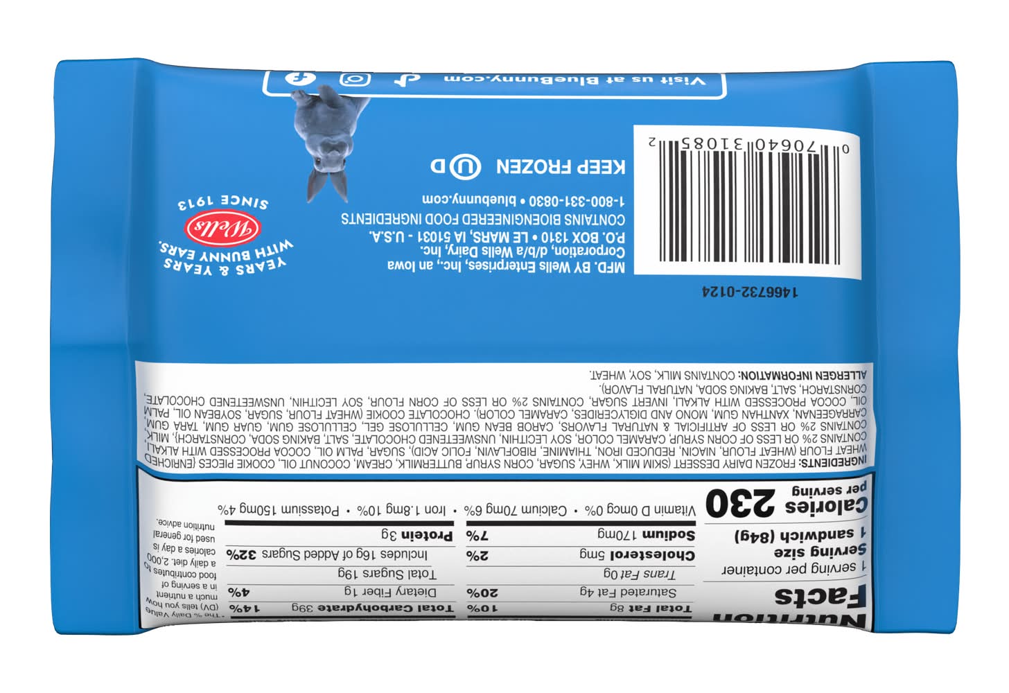 Ingredients: Frozen Dairy Desert (Skim Milk, Whey, Sugar, Corn Syrup, Buttermilk, Cream, Coconut Oil, Cookie Pieces {Enriched Wheat Flour (Wheat Flour, Niacin, Reduced Iron, Thiamine, Riboflavin, Folic Acid), Sugar, Palm Oil, Cocoa Processed with Alkali, Contains 2% or less of Corn Syrup, Caramel Color, Soy Lecithin, Unsweetened Chocolate, Salt, Baking Soda, Cornstarch}, Milk, Contains 2% or Less of Artificial Natural Flavors, Carob Bean Gum, Cellulose Gel, Cellulose Gum, Guar Gum, Tara Gum, Carrageenan, Xanthan Gum, Mono and Diglycerides, Caramel Color). Chocolate Cookie (Wheat Flour, Sugar, Soybean Oil, Palm Oil, Cocoa Processed with Alkali, Invert Sugar, Contains 2% or less of Corn Flour, Soy Lecithin, Unsweetened Chocolate, Cornstarch, Salt, Baking Soda, Natural Flavor). Contains: Contains Milk, Soy, Wheat.