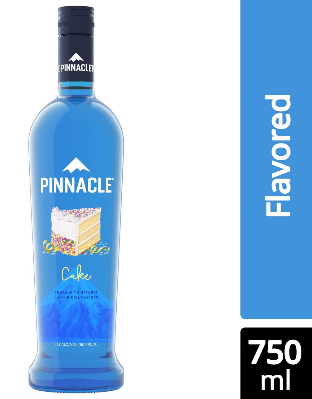 Offering the aroma of warm frosting, this bakery-fresh vanilla cake vodka has notes of baked vanilla and buttercream for a sweet confection in your glass. Stir it into club soda or an ice cream shake for a top-notch treat. For an indulgent cocktail, mix up a Pinnacle Red Velvet Cake-tini by combining one part Pinnacle Cake Vodka, one part JDK & Sons Crave Chocolate Chili Liqueur, and a splash of grenadine. Shake ingredients with ice, strain into a martini glass with its rim dipped in shaved chocolate, and garnish with fresh strawberries. Or try a simple Pinnacle Limon Cake Fizz by mixing one part Pinnacle Cake Vodka with two parts lemon-lime soda in a glass with ice and a lime wedge garnish. Pinnacle Vodka is everything you'd expect from premium vodka, but with none of the attitude and at a delightfully unexpected price. • Flavor: White cake • Alcohol by volume: 35%