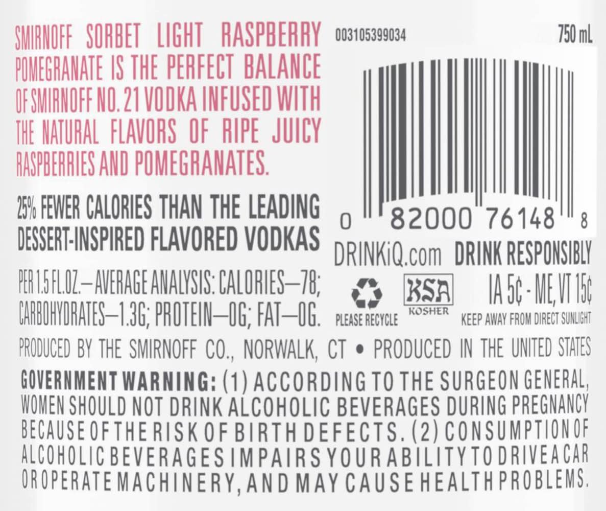 Smirnoff Sorbet Light Vodka, Raspberry & Pomegranate (750 ml)