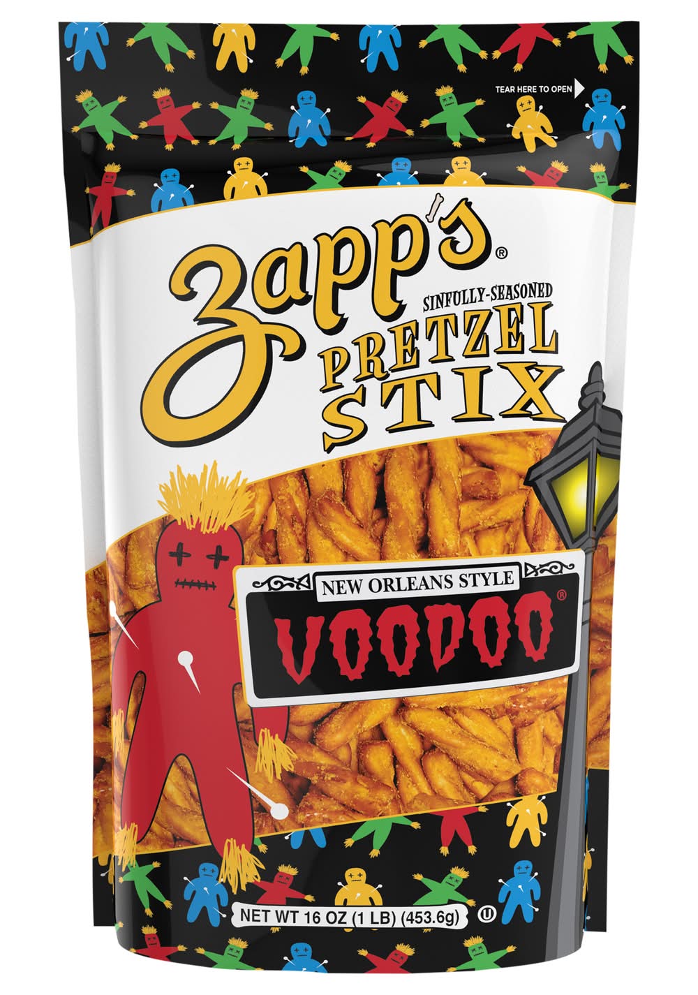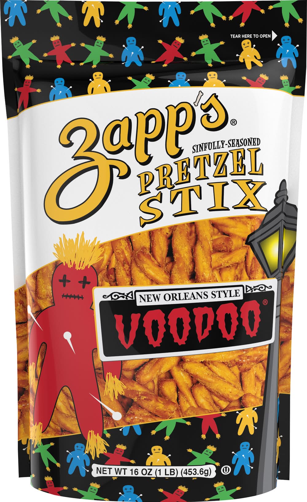 Zapp's Sinfully Seasoned Pretzel Stix bring a new twist on New Orleans inspired flavors. These pretzels are twisted to hold more of our special, secret Voodoo seasoning. This recipe includes premium ingredients and special spice blends to create a pretzel experience that's irresistibly. • Flavor: Voodoo • Number of servings: 5