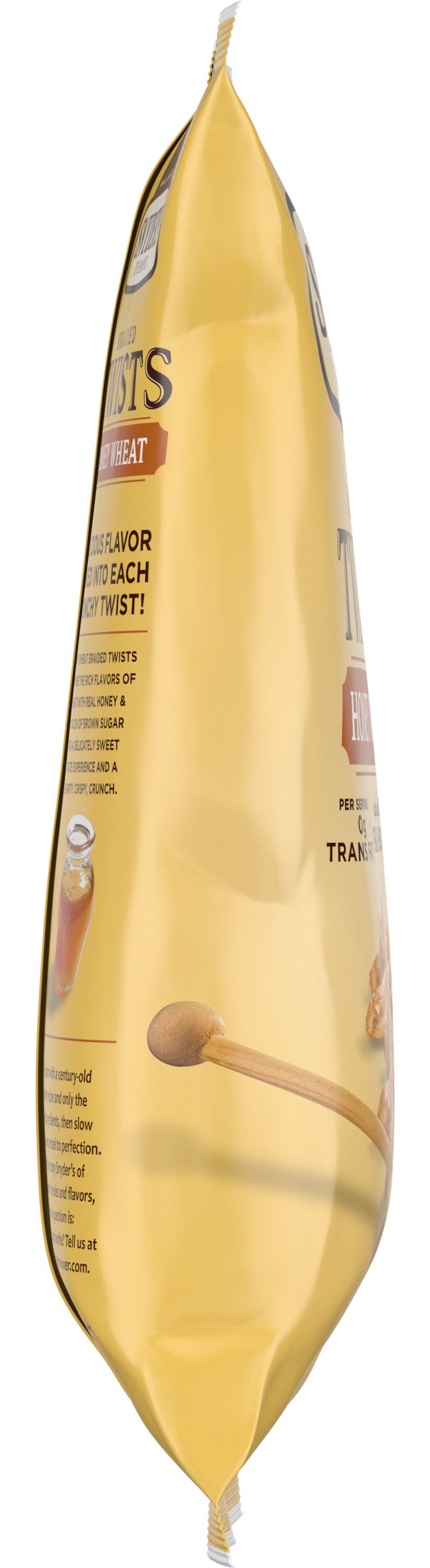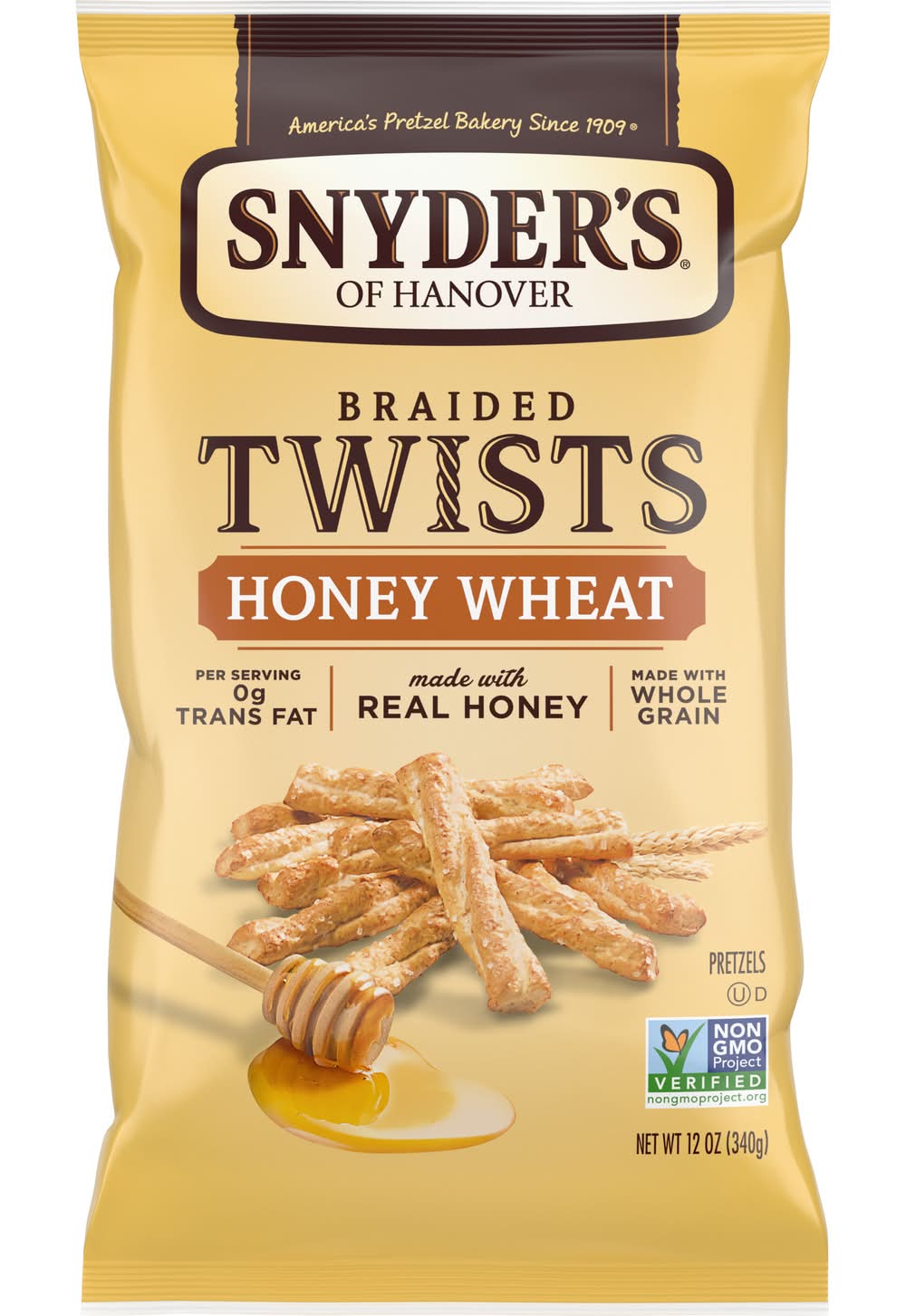 Honey Wheat Braided Twists combine pretzel goodness with real honey for a delicately sweet taste experience in an attractive, easy-to-eat shape. Savor the hearty flavor and delicious crunch of Snyder's of Hanover pretzels. Snyder's of Hanover has been America's Pretzel Bakery since 1909 and our pretzels give you that delicious crunch for the perfect snack! Certified Non-GMO and made in a facility that does not process peanuts, Snyder's of Hanover pretzels are made from quality ingredients, kneaded, and oven-baked to seal in all the flavor. Snyder's of Hanover pretzels have been shared across tables, across generations and across the country, making us America's favorite pretzel brand. S-L Snacks National, Llc, Charlotte,NC,28277-2706,USA