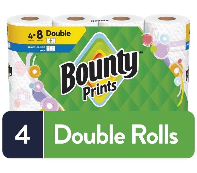 Bounty Paper Towels are 2x more absorbent, so you can clean up messes quicker and use less than the leading ordinary brand. Each sheet has a Durable Diamond Texture to tackle anything from everyday spills to tough projects throughout your home. A variety of pack and rolls sizes are available, and going bigger means you change the roll less often* to always have Bounty on hand. Buy in bulk! Choose from different sheet sizes based on what works best for your needs, including Select-A-Size and Full-Size. You can also change it up with our printed designs. *vs Bounty Regular Roll