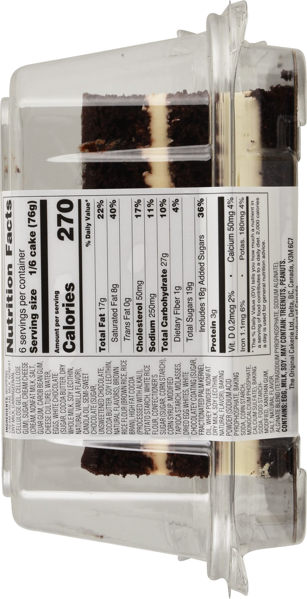 Indulge in a moist chocolate cake layered with the finest Belgian white chocolate mousse and topped with a decadent chocolate ganache. Enjoy the rich flavors knowing it is certified gluten-free Number of servings: 6