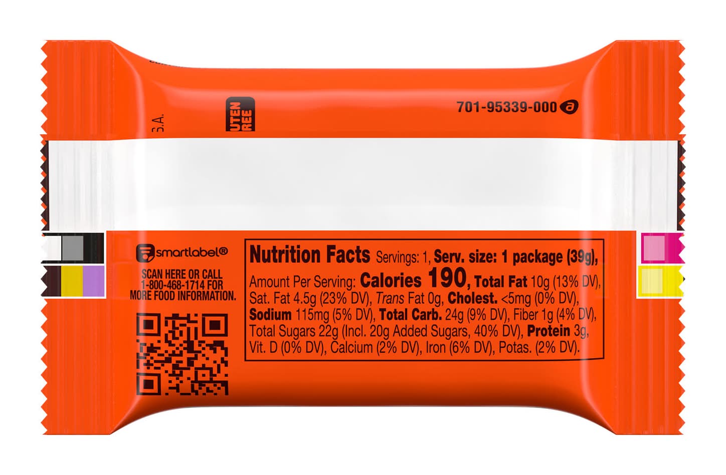 Ingredients: Milk Chocolate (Sugar, Cocoa Butter, Chocolate, Skim Milk, Milk Fat, Lactose, Lecithin (Soy), PGPR), Peanuts, High Fructose Corn Syrup, Sugar, Dextrose, Contains 2% or Less of: Sorbitol, Dairy Butter (Milk), Skim Milk, Hydrogenated Coconut Oil, Cocoa Processed with Alkali, Glycerin, Salt, Mono- and Diglycerides, Baking Soda, Lecithin (Soy), TBHQ & Citric Acid (to Maintain Freshness), Disodium Phosphate Contains: Soy, Milk, Peanuts