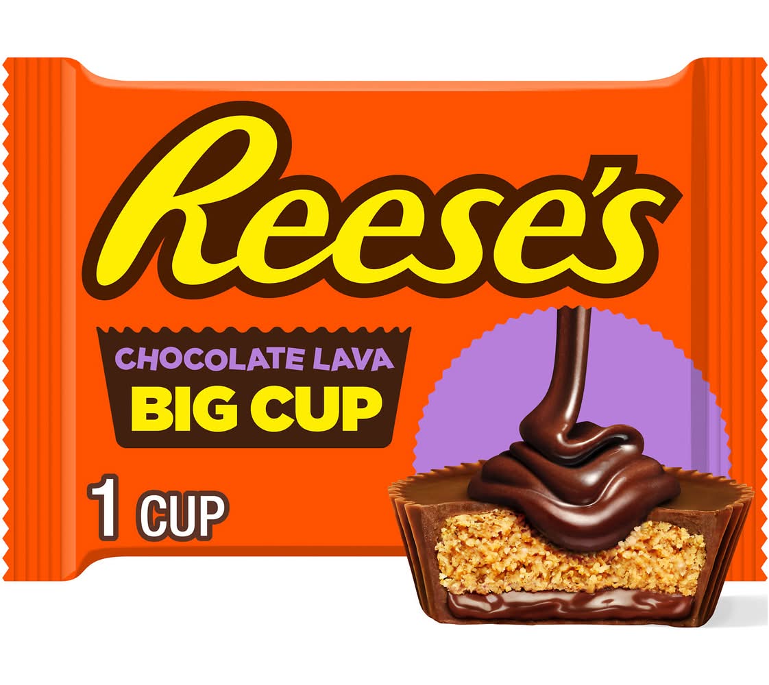 Get ready to taste perfection! You can't beat the old-fashioned, match-made-in-heaven when it comes to creamy milk chocolate combined with delicious peanut butter, now with a decadent layer of chocolatey filling. cups are ready to be your go-to snack. Bring a few packs along to the next sporting event, party, movie marathon, game night and so many other activities for an extra bite of peanut butter and ooey, gooey, chocolatey goodness. Store a handful of packs in your pantry to easily slip into lunch boxes and purses for a midday surprise. These extra chocolatey peanut butter cup candies are a sweet delight that you can bite, break, dunk or nibble on. Yes! Dunk them into a cold glass of milk, a cup of hot chocolate or your coffee to experience the melty goodness. Put a unique twist on cookies, cupcakes and ice cream sundaes with whole, halved or crumbled cups. These kosher certified and gluten free treats go well with almost everything, especially during your holiday celebrations. Add them to Christmas stockings, Halloween candy bowls, Valentine's Day gift bags and Easter baskets. Just don't forget to save a few. Flavor: Chocolate lava