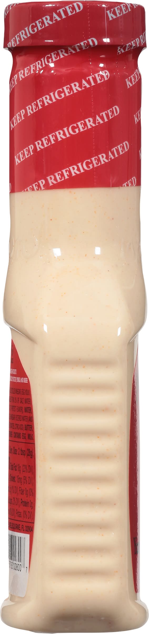 Ingredients: Mayonnaise (Soybean Oil, Distilled Vinegar, Egg Yolk, High Fructose Corn Syrup, Contains Less than 2% of Salt, Water, Mustard Seed, Calcium Disodium EDTA (to Protect Flavor]), Water, Sugar, Flavored Vinegar (White Distilled Vinegar, Filtered Water, and Natural Flavor), Spices, Tomato Paste (Tomatoes, Citric Acid), Butter, Garlic, Salt, Soybean Oil, Garlic Powder Contains: Eggs, Milk, Soybeans, Corn