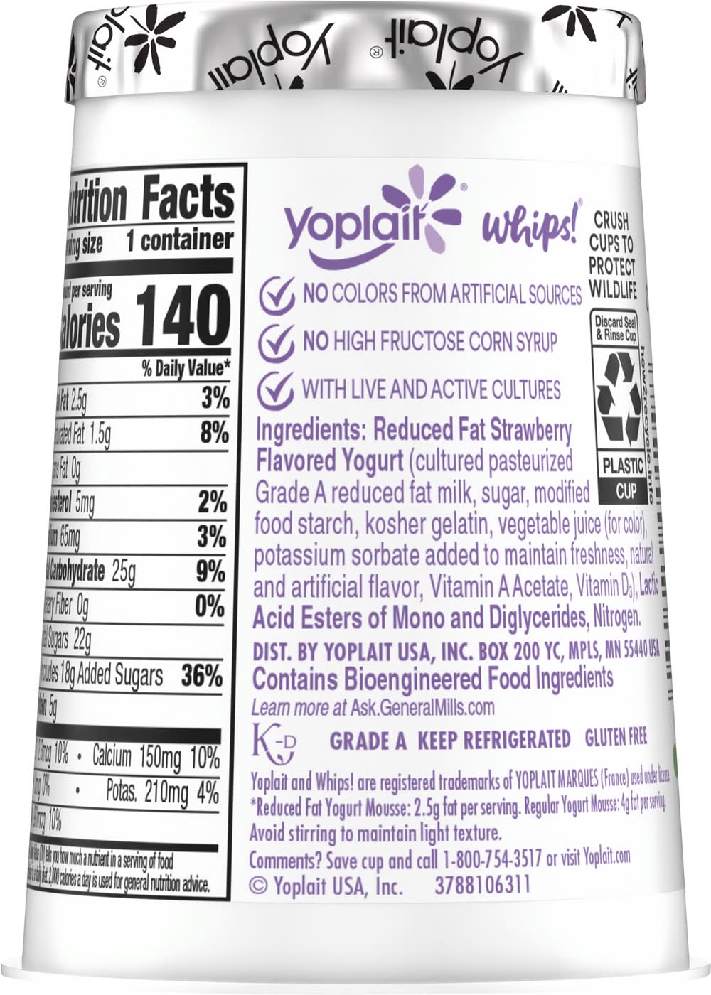 Reduced Fat Strawberry Mist Yogurt Mousse • Flavor: Strawberry mist • Yoplait Usa, inc., Box 200 YC,Minneapolis,MN,55440