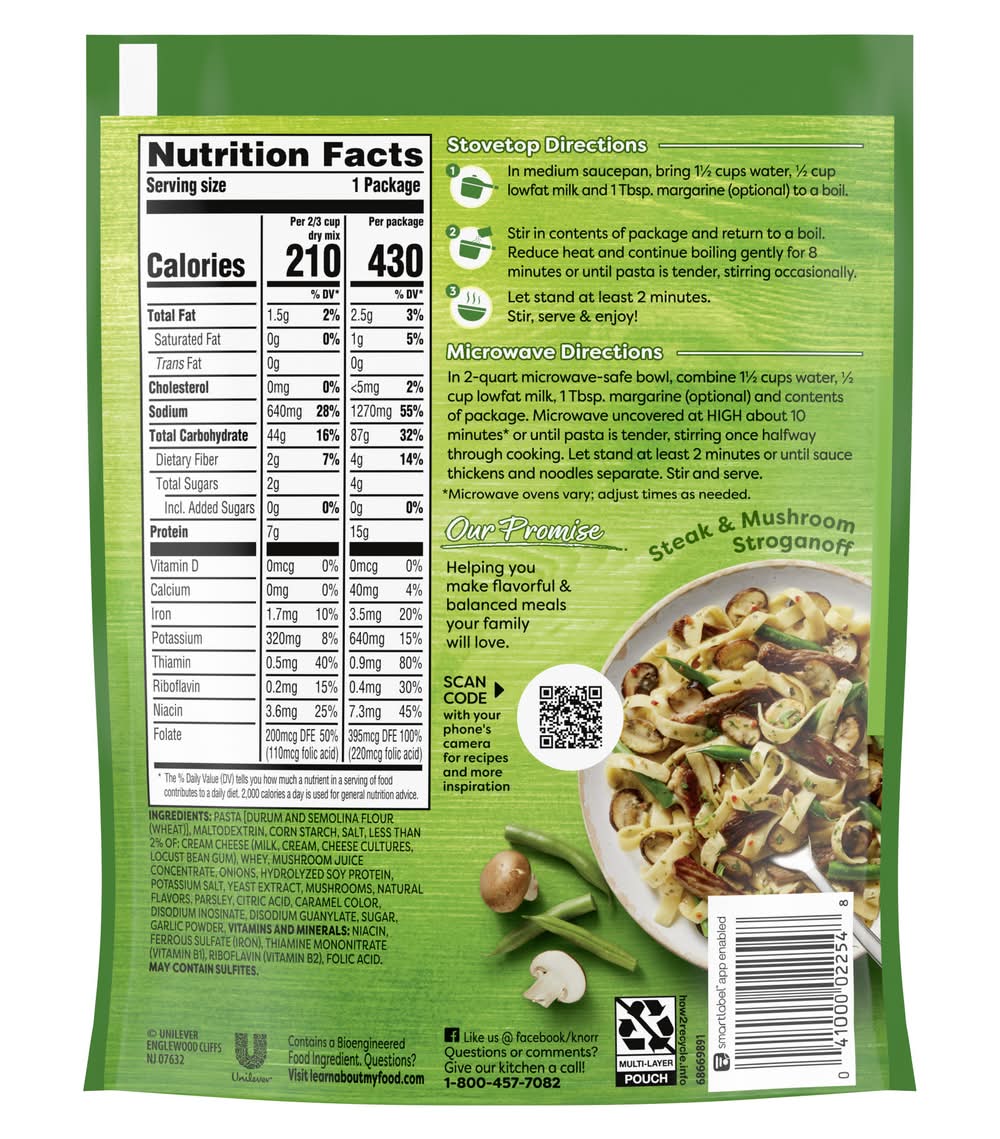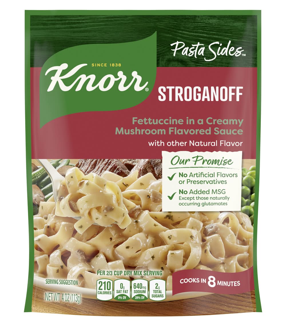 Knorr Pasta Sides Stroganoff Fettucinne, 4 oz • Unilever, Englewood Cliffs, NJ, 07632 • Packaging: Reusable